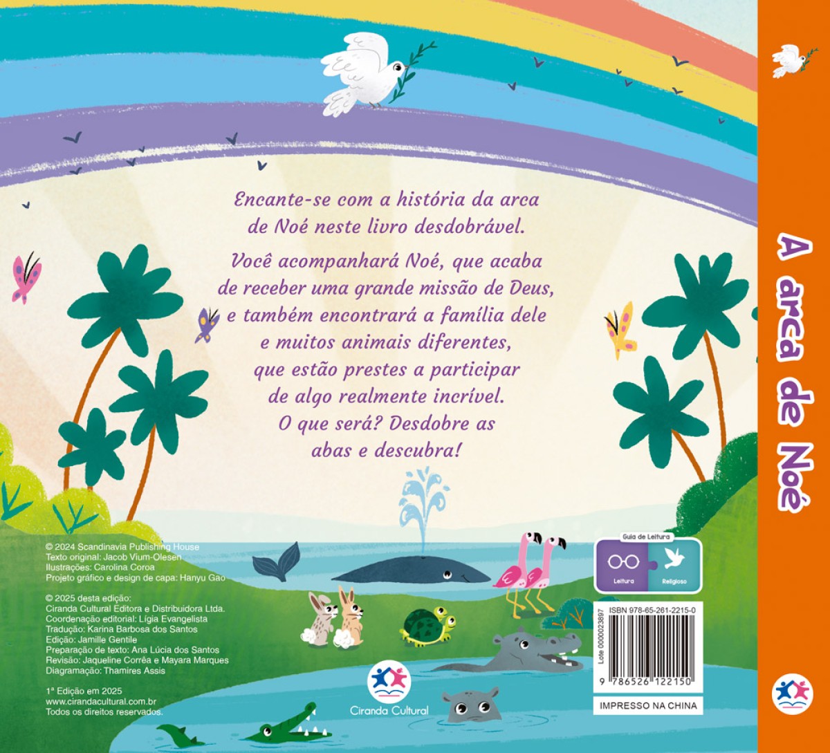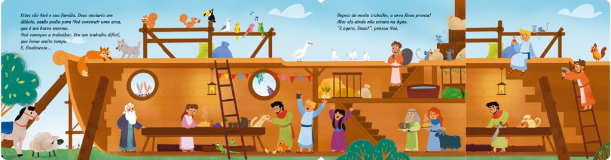 Encante-se com a história da arca de Noé neste livro desdobrável. Você acompanhará Noé, que acaba de receber uma grande missão de Deus, e também encontrará a família dele e muitos animais diferentes, que estão prestes a participar de algo realmente incrível. O que será? Desdobre as abas e descubra!