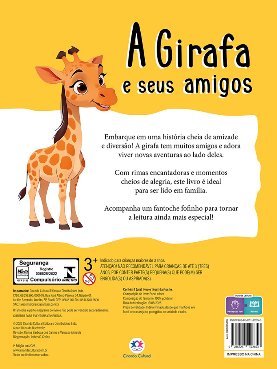 Com rimas delicadas, linguagem acessível e situações cheias de ternura, a história estimula valores como amizade, cooperação e empatia, convidando a criança a participar ativamente da narrativa. O fantoche de mão transforma a leitura em uma experiência lúdica, incentivando a imaginação, a expressão oral e a coordenação motora. Ideal para a leitura compartilhada entre adultos e crianças, este livro cria momentos afetivos especiais e torna o aprendizado ainda mais prazeroso. Indicado para crianças a partir de 3 anos.