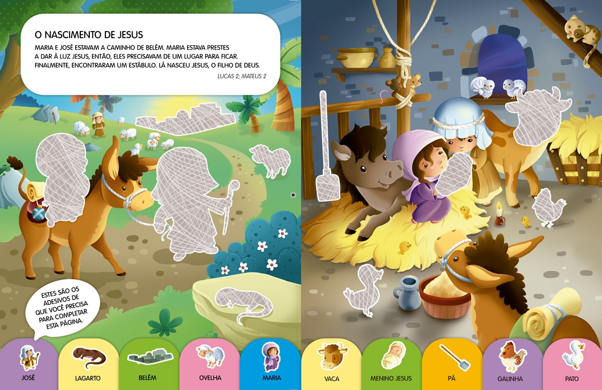 Com os adesivos brilhantes, as histórias sobre a vida de Jesus ganharão mais cores, e você vai se encantar!