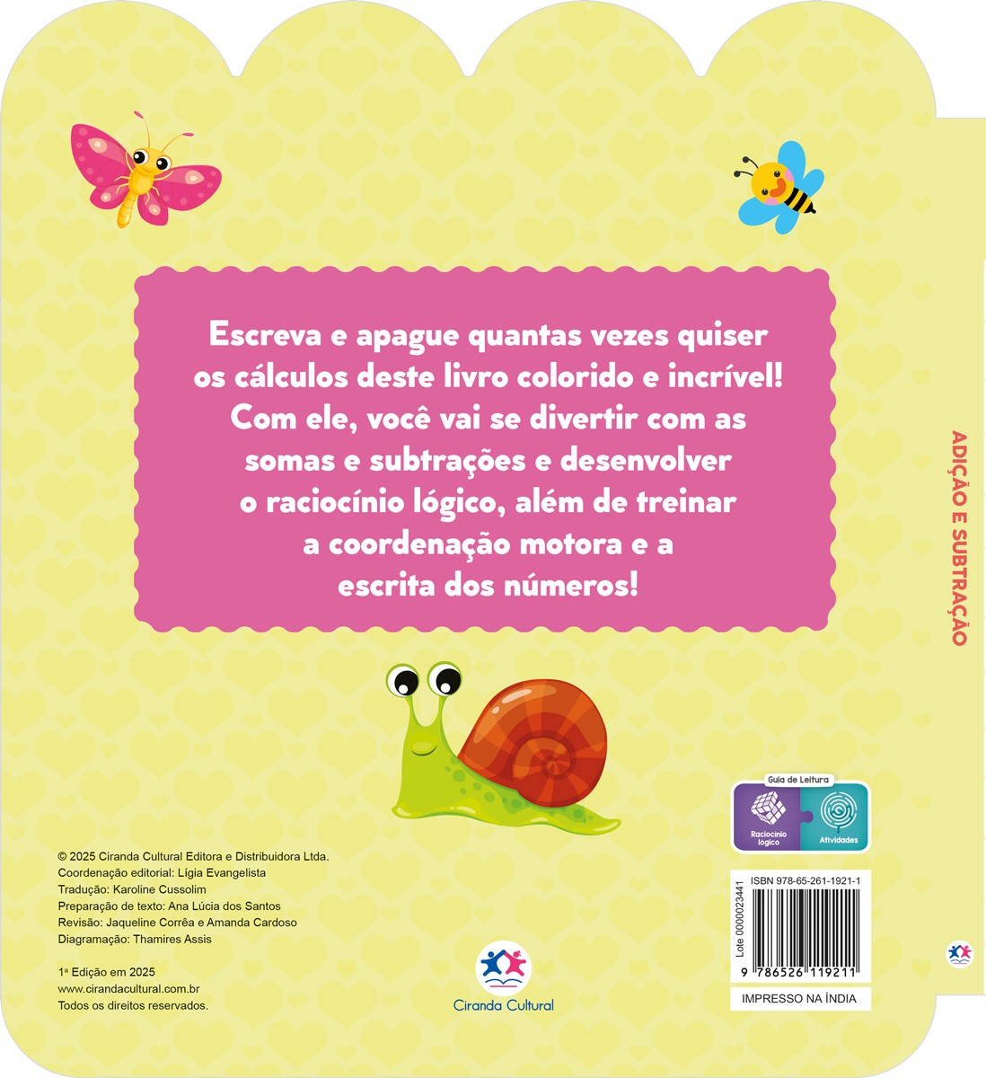Escreva e apague quantas vezes quiser os cálculos deste livro colorido e incrível! Com ele, você vai se divertir com as somas e subtrações e desenvolver o raciocínio lógico, além de treinar a coordenação motora e a escrita dos números!