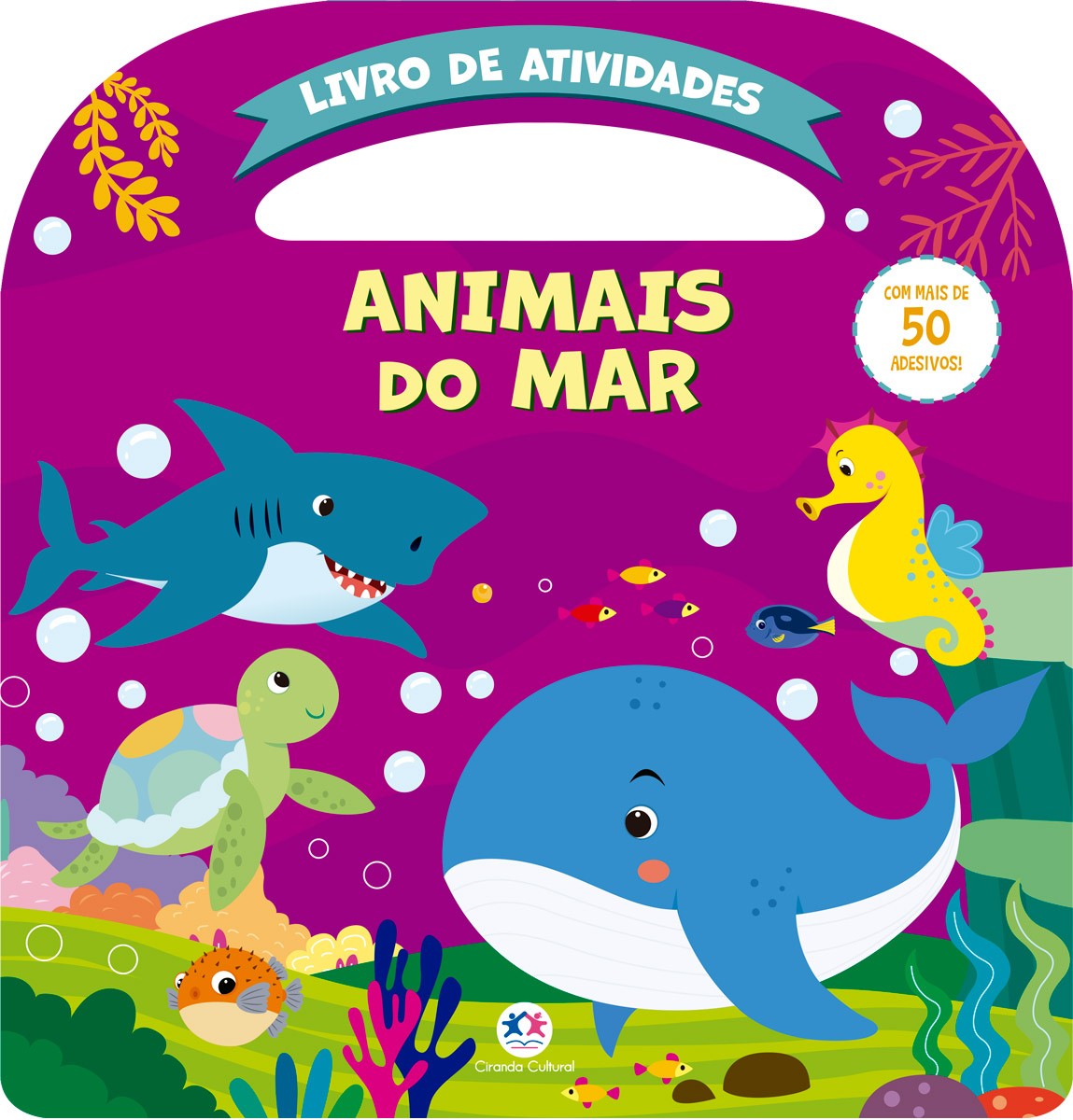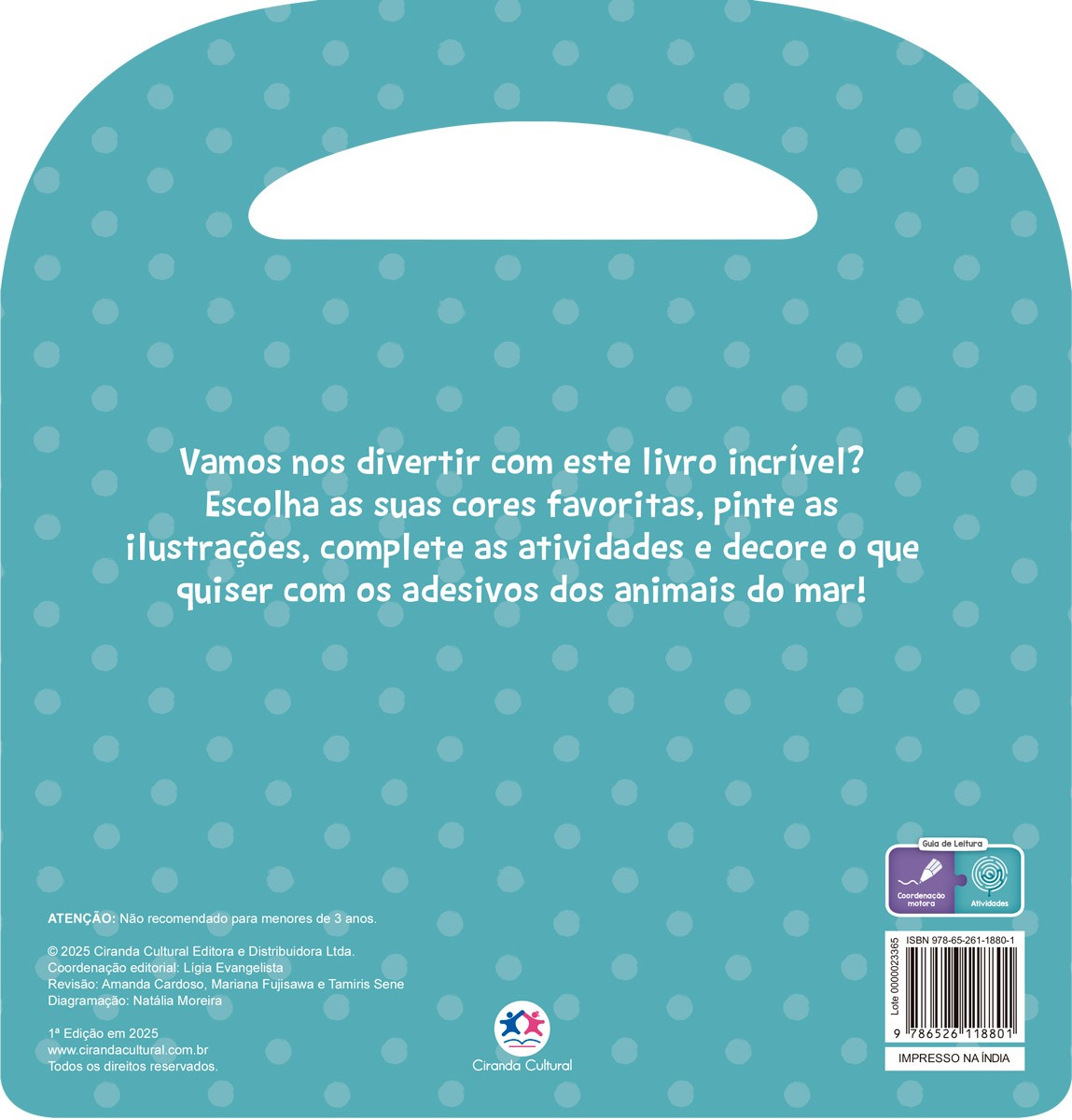Vamos nos divertir com este livro incrível? Escolha as suas cores favoritas, pinte as ilustrações, complete as atividades e decore o que quiser com os adesivos dos animais do mar!