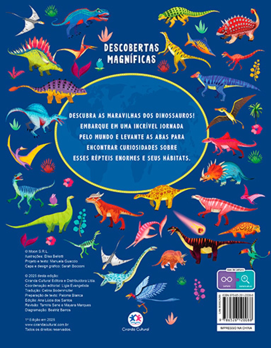 Descubra as maravilhas dos dinossauros! Embarque em uma incrível jornada pelo mundo e levante as abas para encontrar curiosidades sobre os répteis enormes e seus habitats.