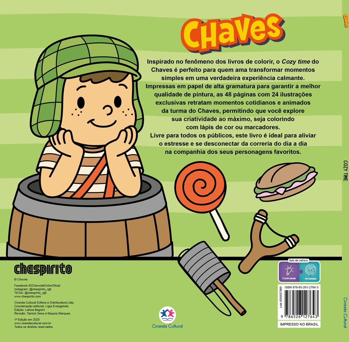 Com 48 páginas e 24 ilustrações encantadoras dos personagens da turma do Chaves, impressas em papel de alta gramatura para garantir a melhor qualidade na pintura, este livro permite que você solte a criatividade e mergulhe em um universo de tranquilidade e diversão.