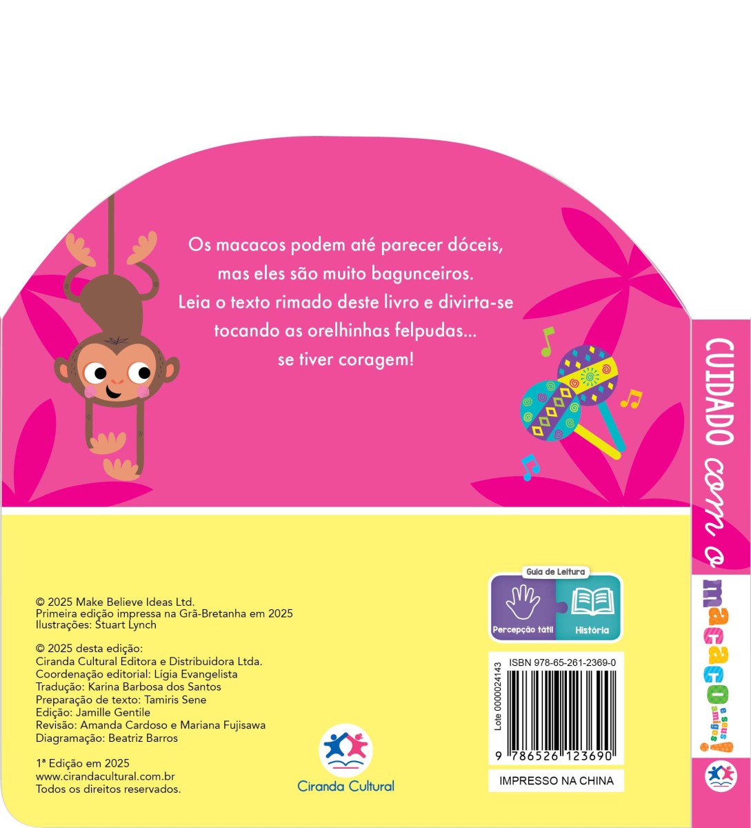 Os macacos podem até parecer dóceis, mas eles são bagunceiros. Leia o texto rimado deste livro e divirta-se tocando as orelhinhas felpudas... se tiver coragem!