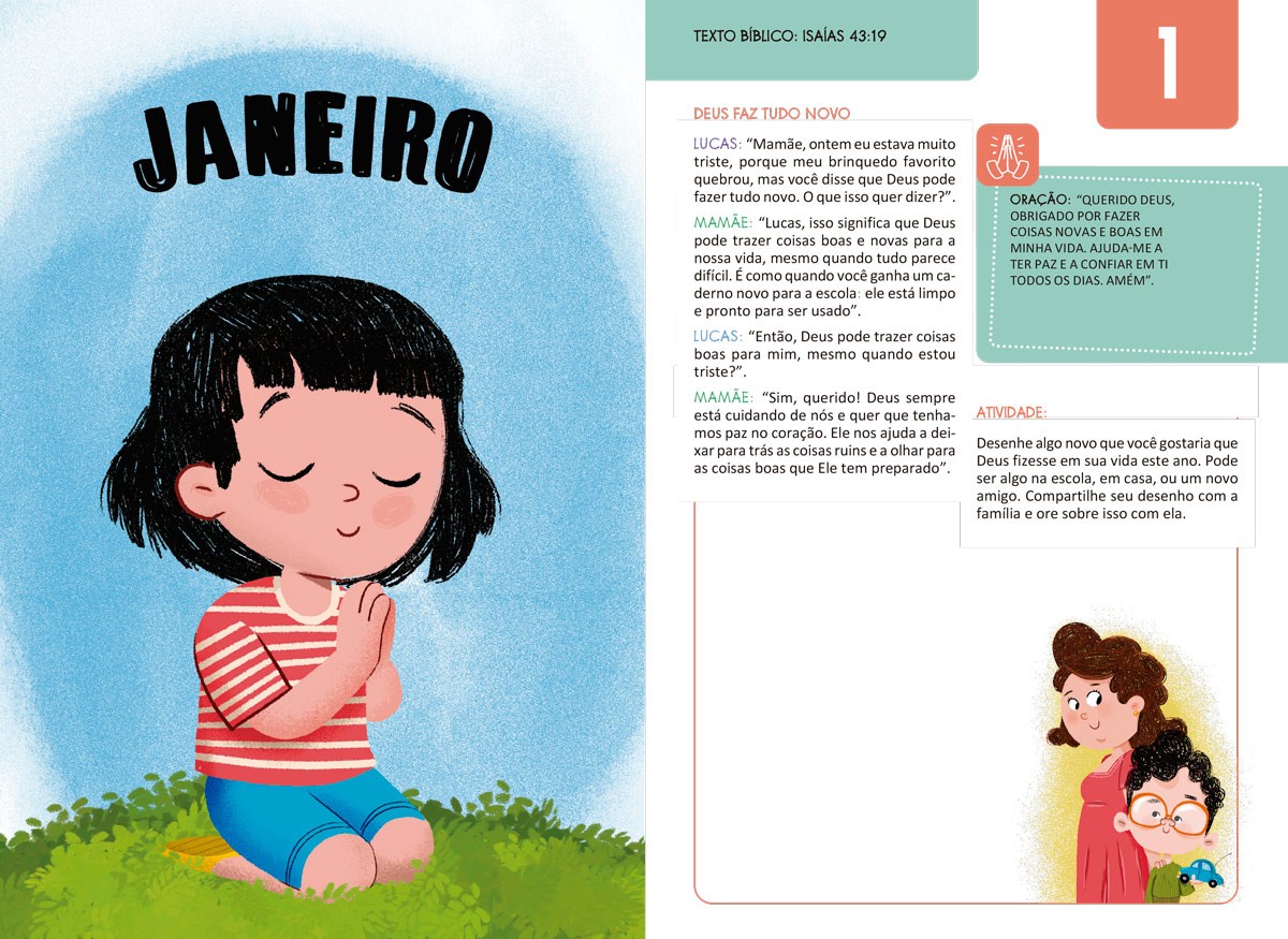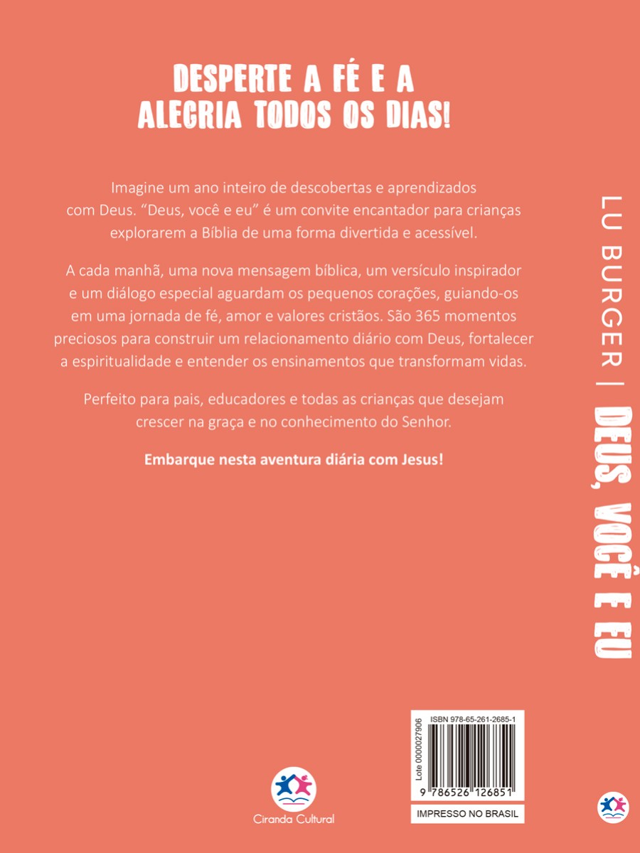 A cada manhã, uma nova mensagem bíblica, um versículo inspirador e um diálogo especial aguardam os pequenos corações, guiando-os em uma jornada de fé, amor e valores cristãos. São 365 momentos preciosos para construir um relacionamento diário com Deus, fortalecer a espiritualidade e entender os ensinamentos que transformam vidas.