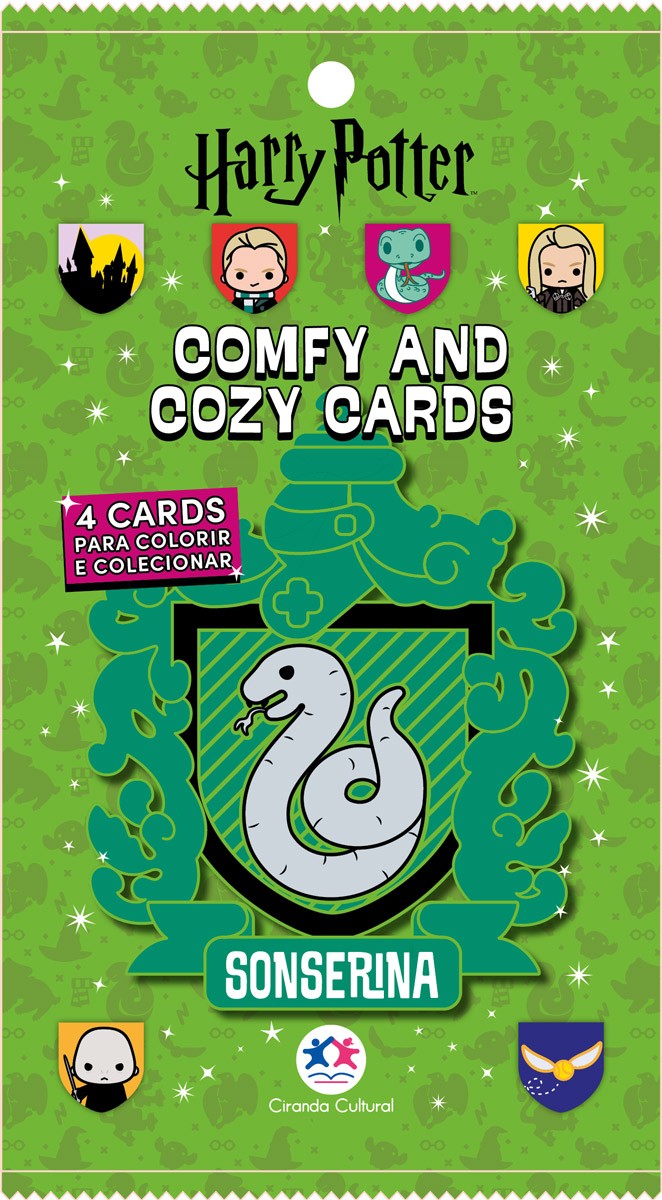 Descubra a magia dos Comfy and Cozy Cards para colorir e colecionar! Prepare-se para se encantar com uma experiência única e divertida. Cada envelope sortido traz 4 cards colecionáveis e variados, prontos para despertar sua criatividade. Com o tema do Harry Potter, perfeito para todas as idades, trazem um momento relaxante no seu dia. Se vier repetido, troque sua figurinha com seu amigo e torne a brincadeira ainda mais divertida com quem você gosta. Comece agora sua coleção e mergulhe nesse universo criativo! *Atenção! Não é possível escolher a cor do envelope que será enviado.