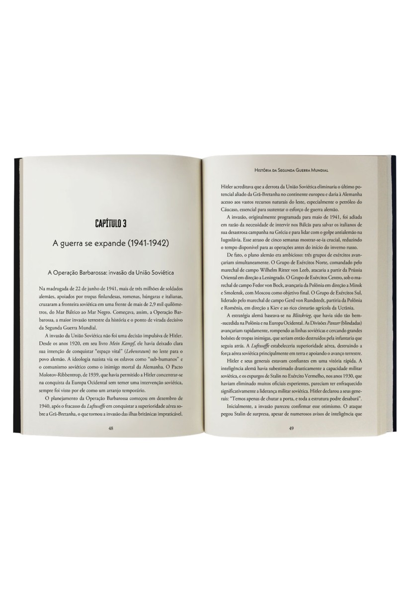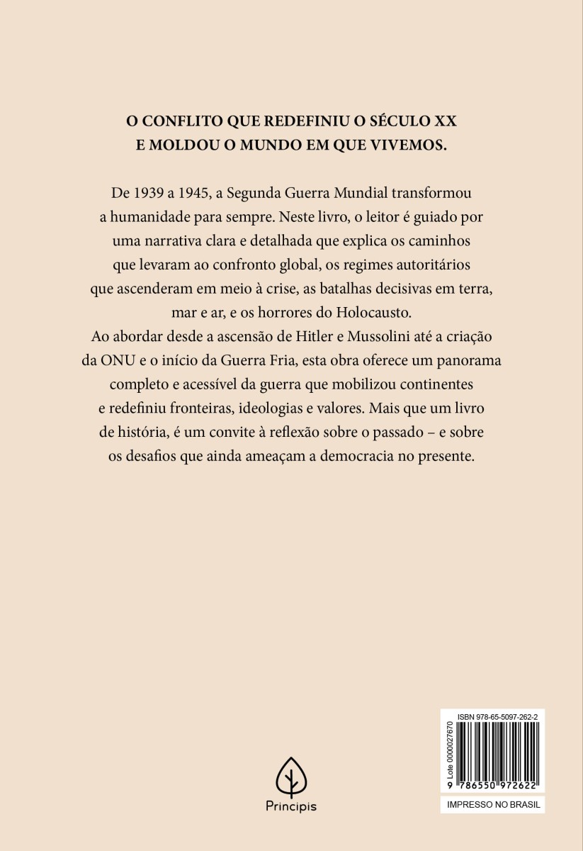 O CONFLITO QUE REDEFINIU O SÉCULO XX E MOLDOU O MUNDO EM QUE VIVEMOS. De 1939 a 1945, a Segunda Guerra Mundial transformou a humanidade para sempre. Neste livro, o leitor é guiado por uma narrativa clara e detalhada que explica os caminhos que levaram ao confronto global, os regimes autoritários que ascenderam em meio à crise, as batalhas decisivas em terra, mar e ar, e os horrores do Holocausto. Ao abordar desde a ascensão de Hitler e Mussolini até a criação da ONU e o início da Guerra Fria, esta obra oferece um panorama completo e acessível da guerra que mobilizou continentes e redefiniu fronteiras, ideologias e valores. Mais que um livro de história, é um convite à reflexão sobre o passado – e sobre os desafios que ainda ameaçam a democracia no presente.