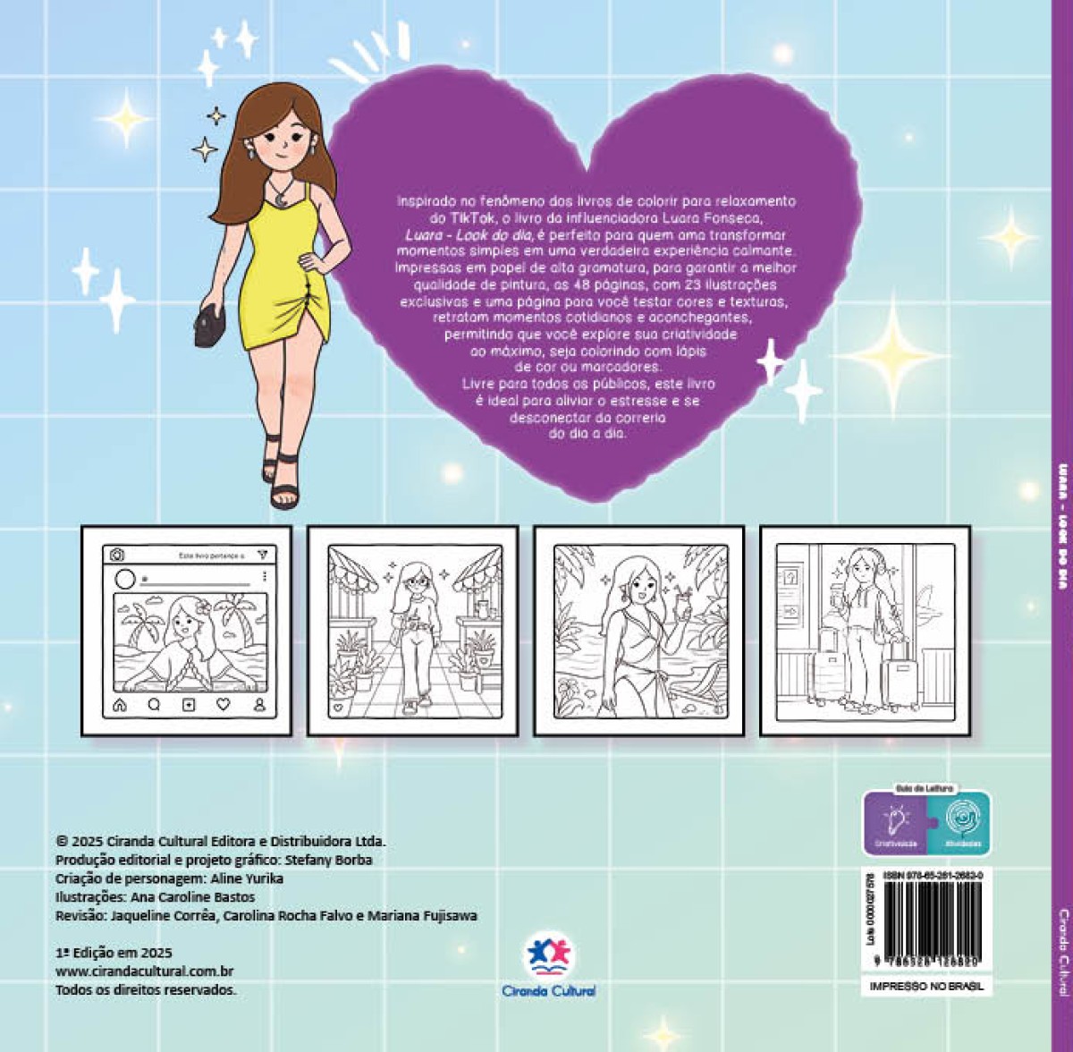 Inspirado no fenômeno dos livros de colorir para relaxamento do TikTok, o livro da influenciadora Luara Fonseca, Luara - Look do dia, é perfeito para quem ama transformar momentos simples em uma verdadeira experiência calmante. Impressas em papel de alta gramatura, para garantir a melhor qualidade de pintura, as 48 páginas, com 23 ilustrações exclusivas e uma página para você testar cores e texturas, retratam momentos cotidianos e aconchegantes, permitindo que você explore sua criatividade ao máximo, seja colorindo com lápis de cor ou marcadores. Livre para todos os públicos, este livro é ideal para aliviar o estresse e se desconectar da correria do dia a dia.