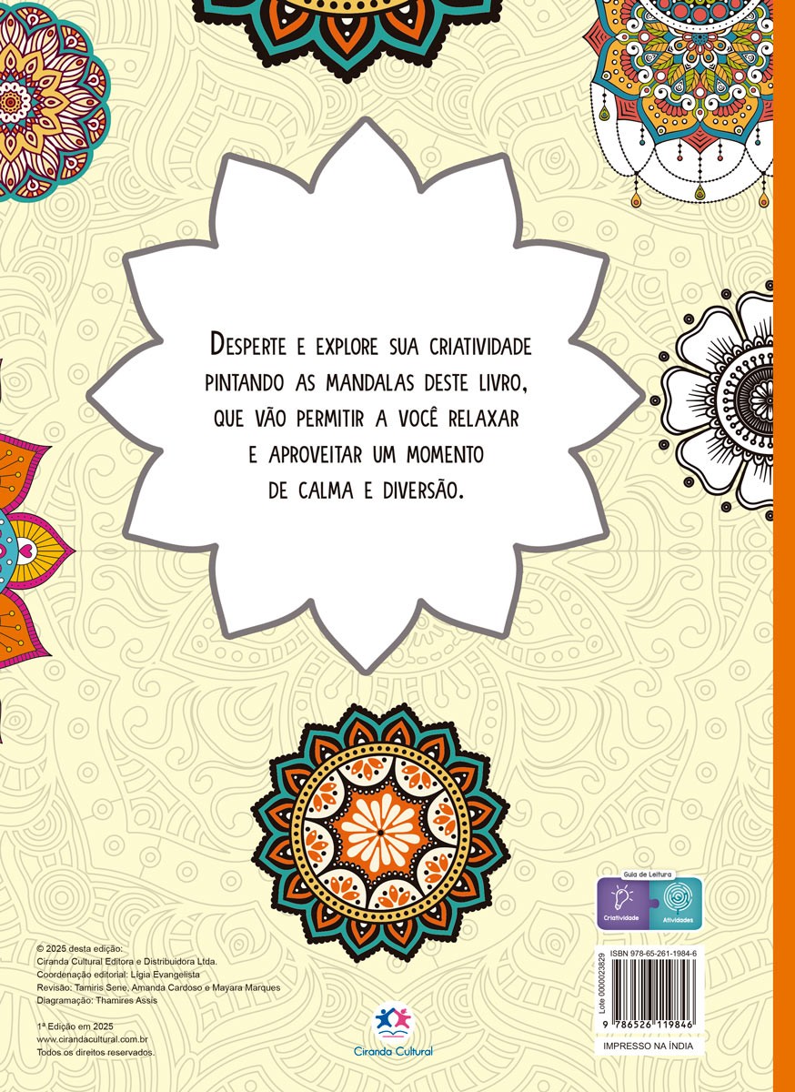 Desperte e explore sua criatividade pintando as mandalas deste livro, que te permitirão relaxar e aproveitar um momento de calma e diversão.