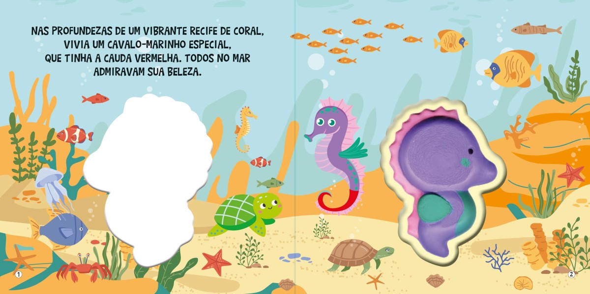 Venha mergulhar e se divertir com os amigos do mar. Leia, aperte o cavalo-marinho fofinho e divirta-se.