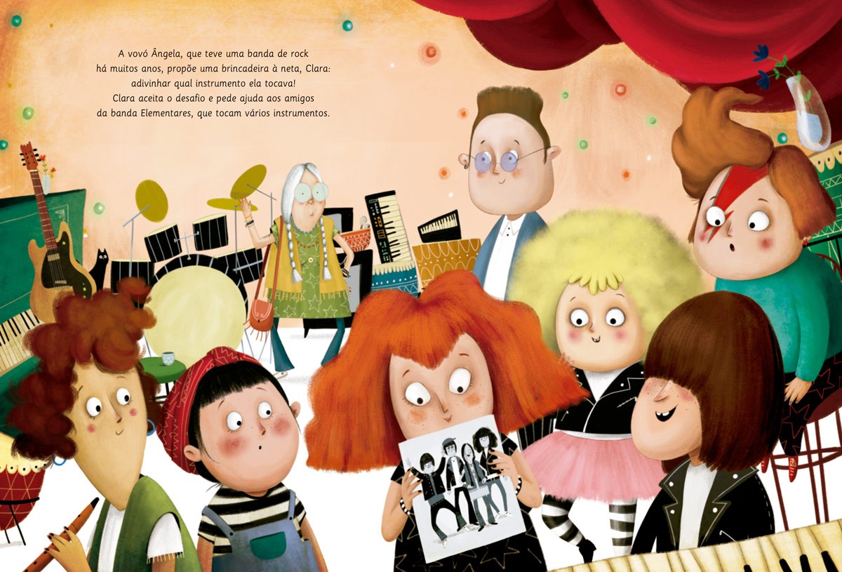 A vovó Ângela teve a própria banda de rock muitos anos atrás, e a neta, Clara, quer saber qual instrumento ela tocava, mas... Clara terá de adivinhar com a ajuda dos amigos! Divirta-se com esta história enquanto descobre o som de vários instrumentos, apertando o botão de cada página.