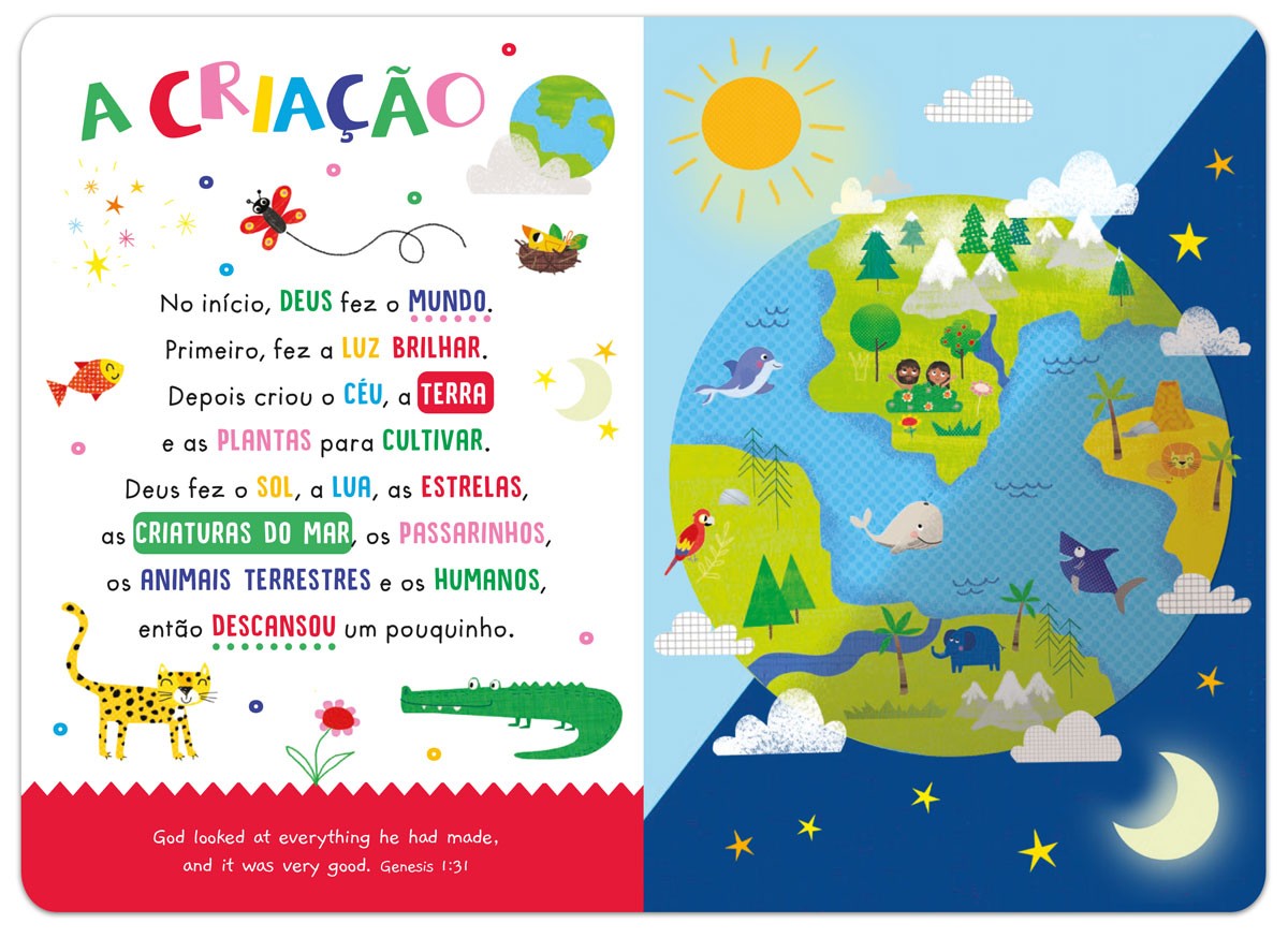 Navegue com Noé, siga, siga Moisés pelo Mar Vermelho e conheça os milagres de Jesus nesta Bíblia com várias rimas feita especialmente para você!