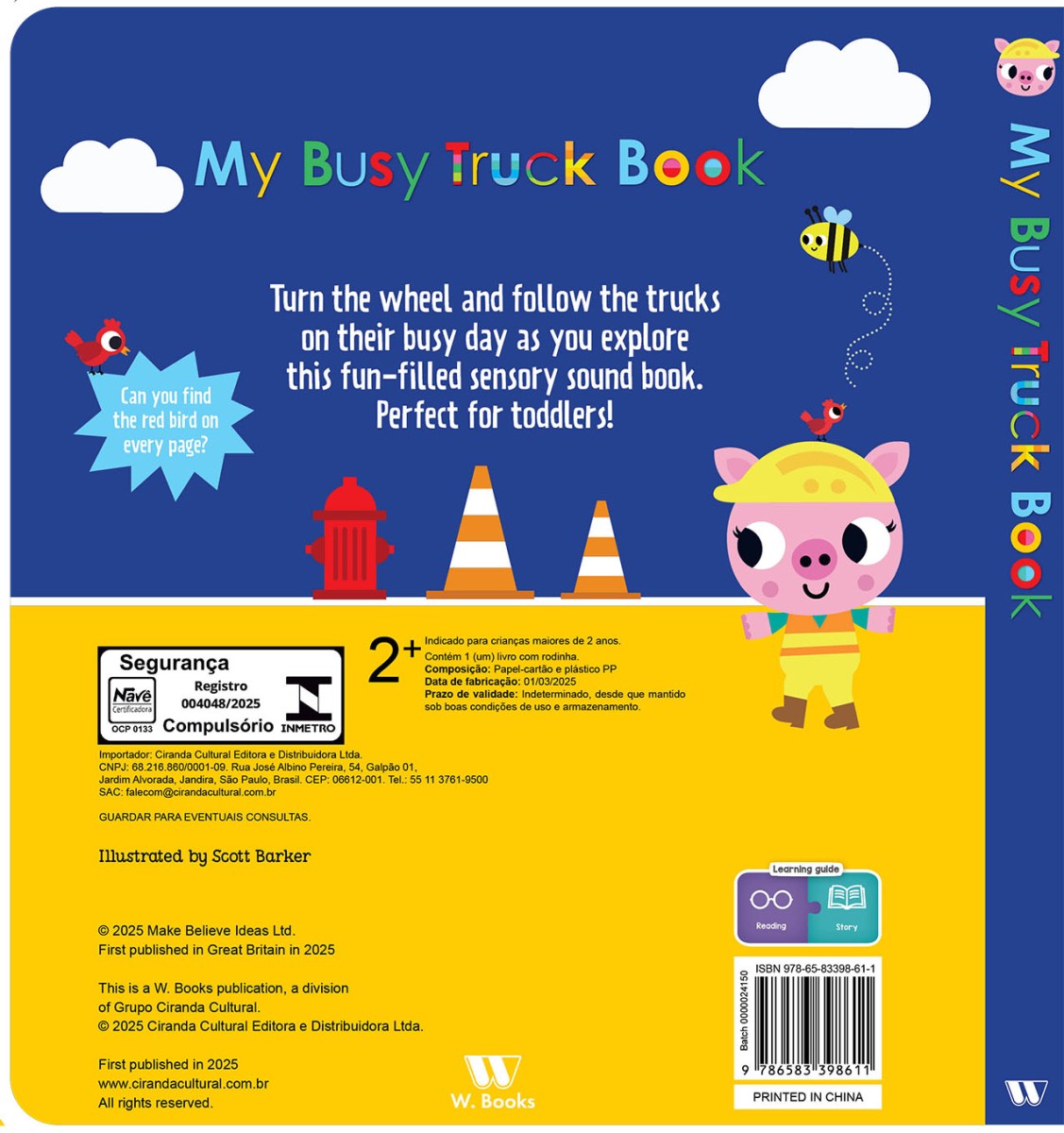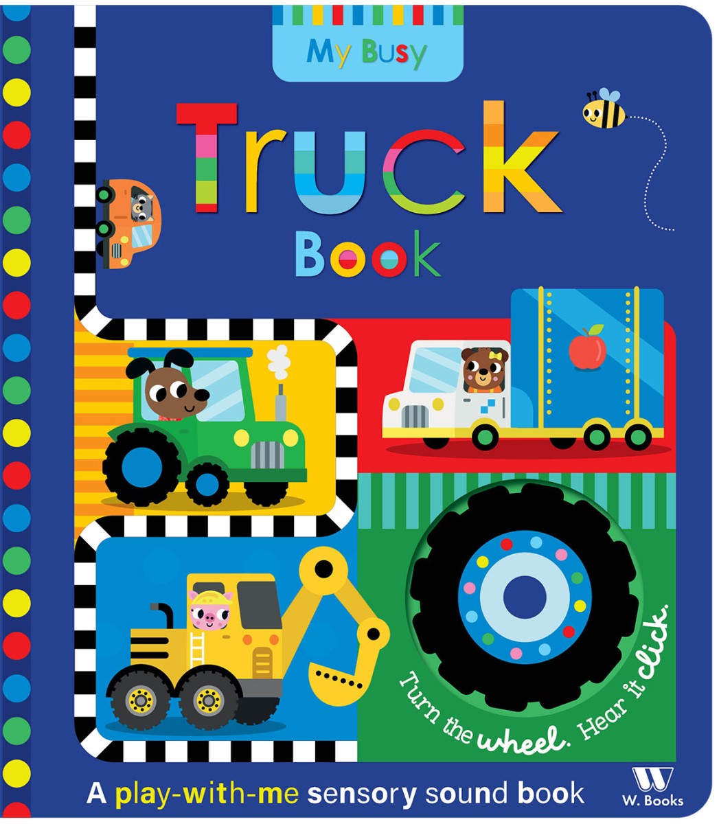 Trun the wheel and follow the trucks on their busy day as you explore this fun-filled sensory sound book. Perfect for toddlers!