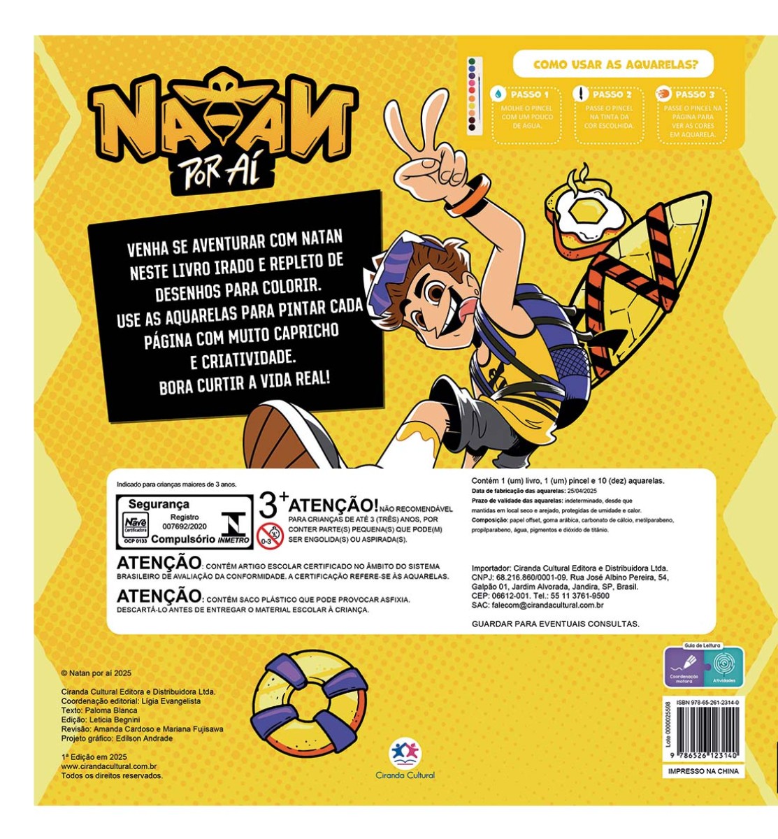 Venha se aventurar com Natan neste livro irado e repleto de desenhos para colorir. Use as aquarelas para pintar cada página com muito capricho e criatividade. Bora curtir a vida real!
