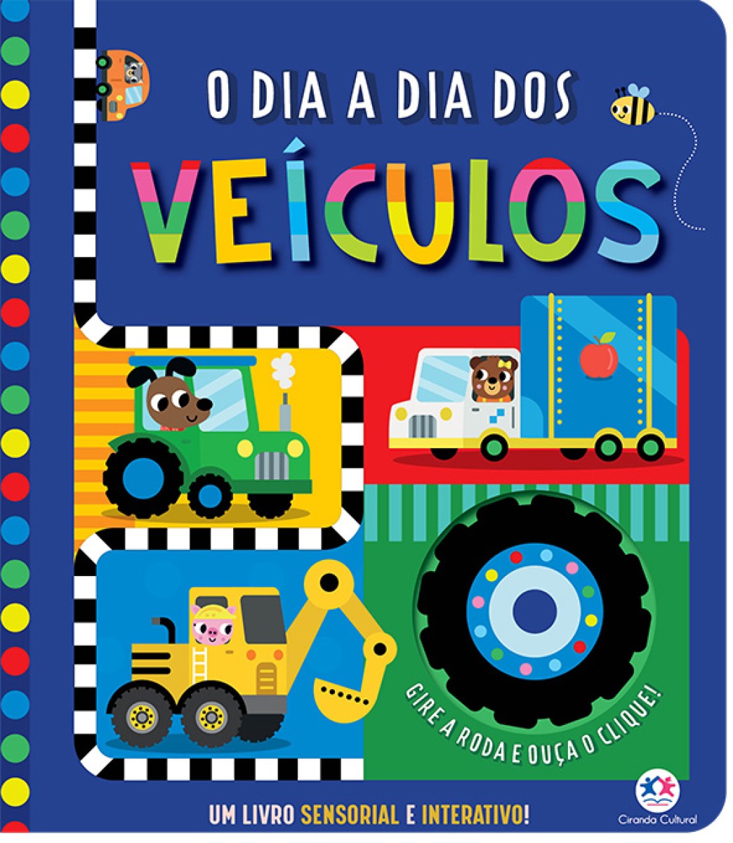 Gire a roda e acompanhe o dia a dia dos veículos. Um livro sensorial e divertido, perfeito para pequeninos com você!