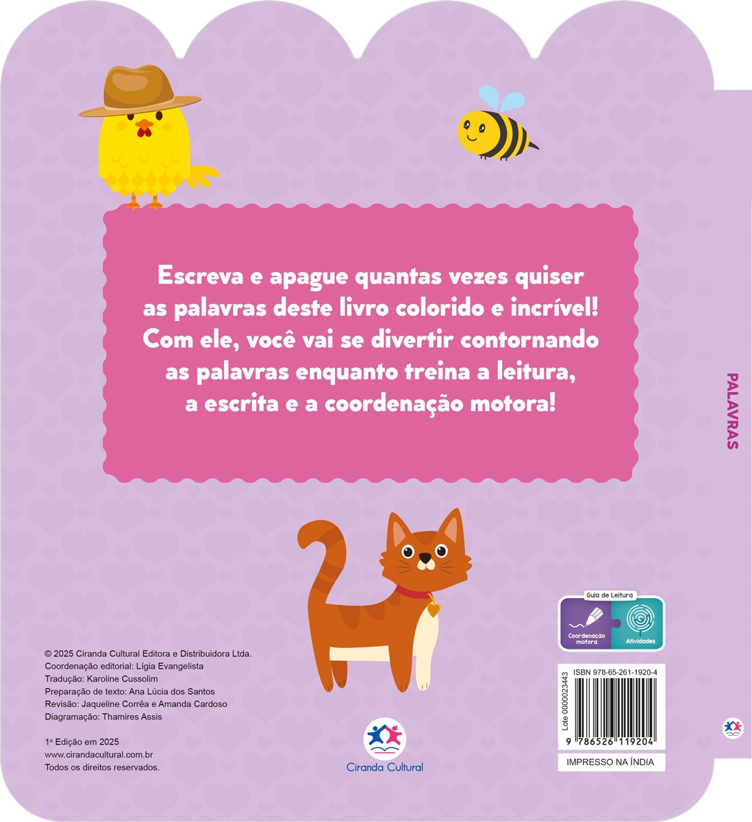 Escreva e apague quantas vezes quiser as palavras deste livro colorido e incrível! Com ele, além de se divertir, você vai contornar as palavras enquanto treina a leitura, a escrita e a coordenação motora!