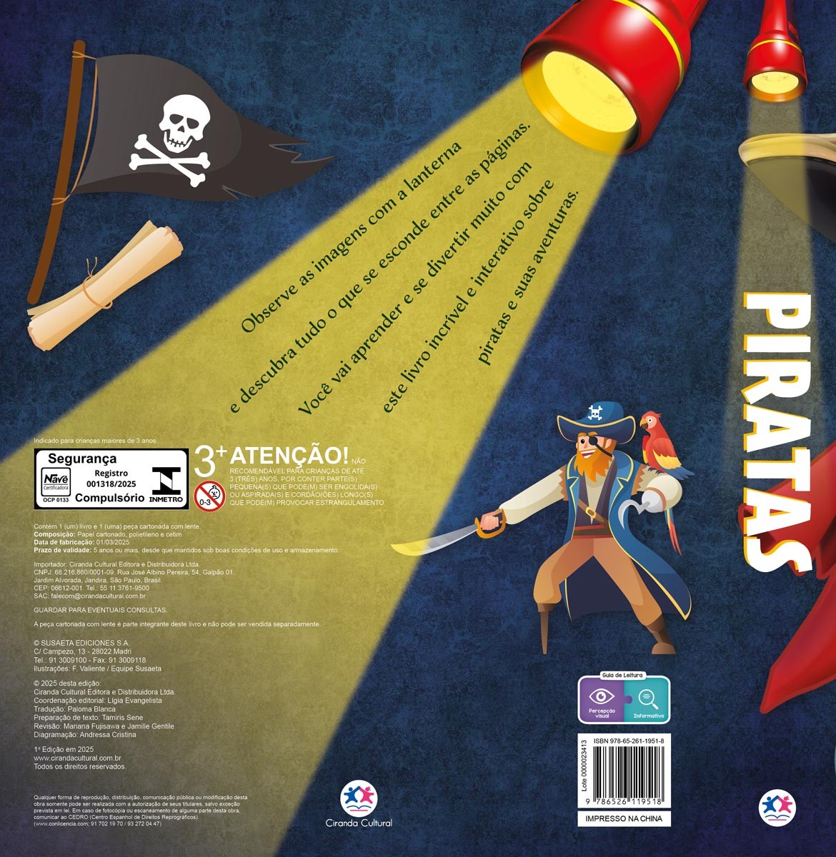 Observe as imagens com a lanterna e descubra tudo o que se esconde entre as páginas. Você vai aprender e se divertir muito com este livro incrível e interativo sobre piratas e suas aventuras.