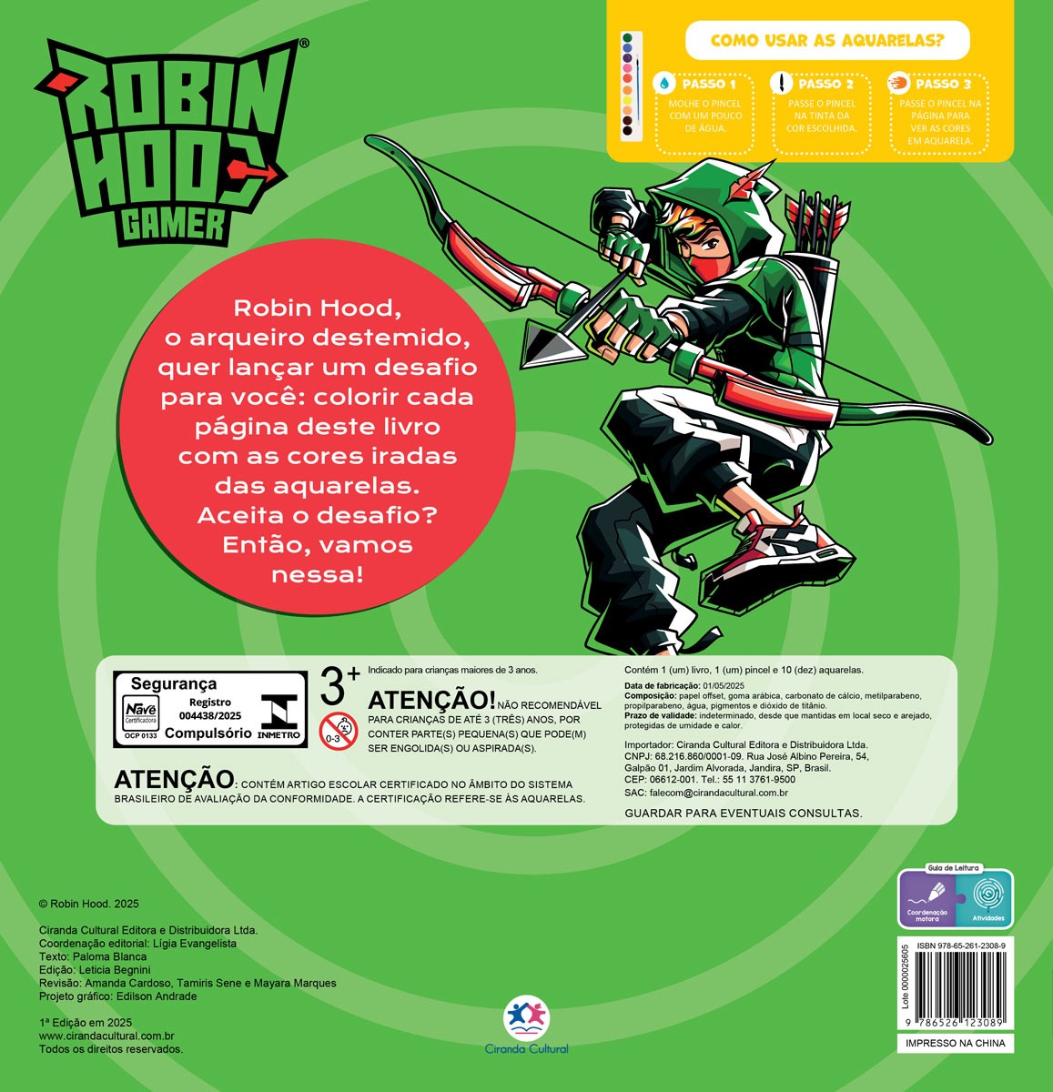 Robin Hood, o arqueiro destemido, quer lançar um desafio para você: dar vida a cada página deste livro com as cores incríveis das aquarelas. Aceita o desafio? Então, vamos nessa!