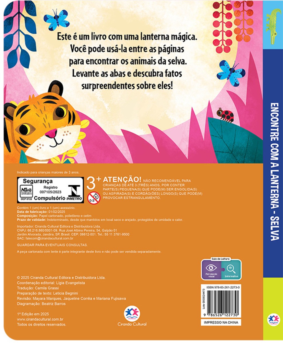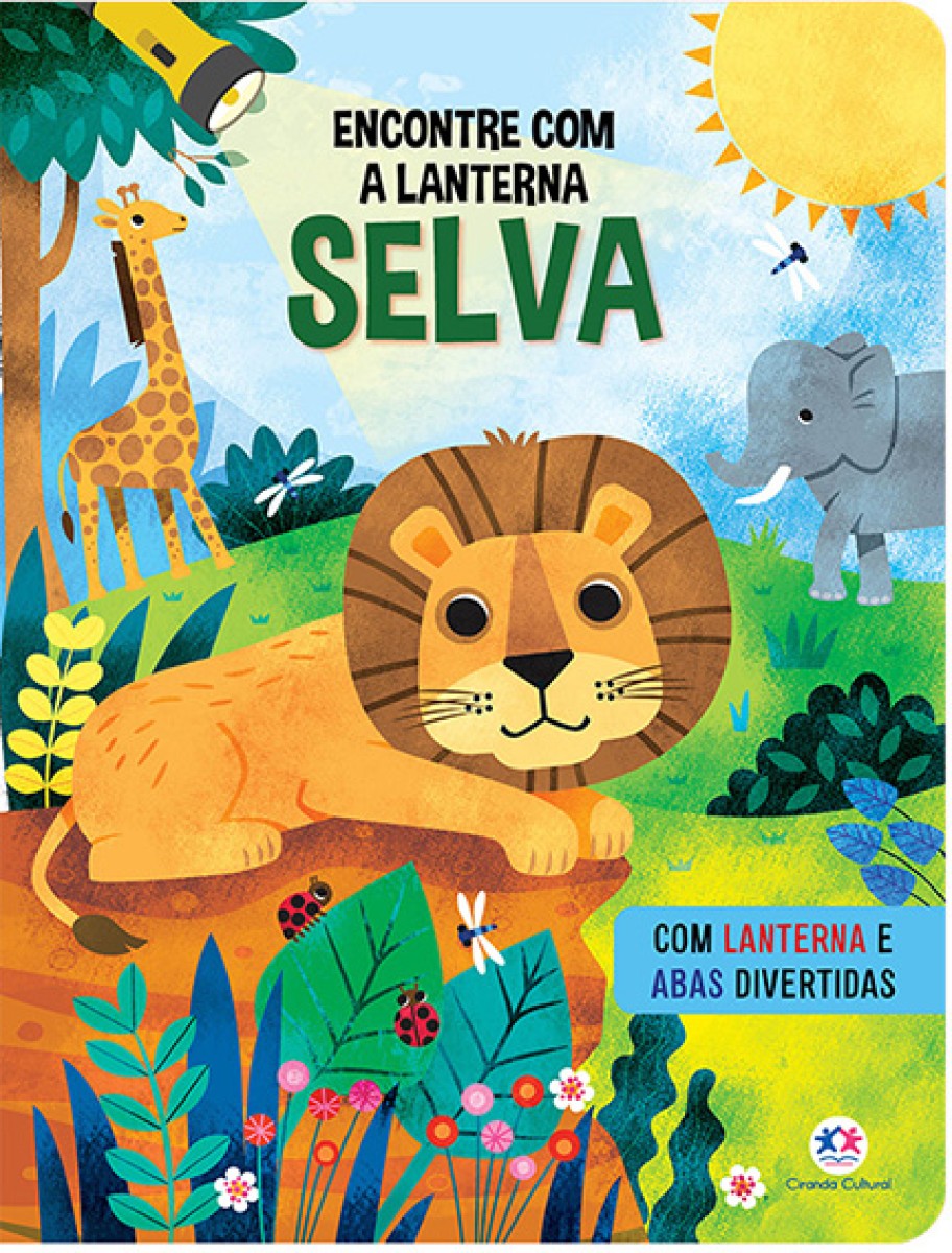 Este é um livro com uma lanterna mágica. Você pode usá-la entre as páginas para encontrar os animais da selva. Levante as abas e descubra fatos surpreendentes sobre eles!