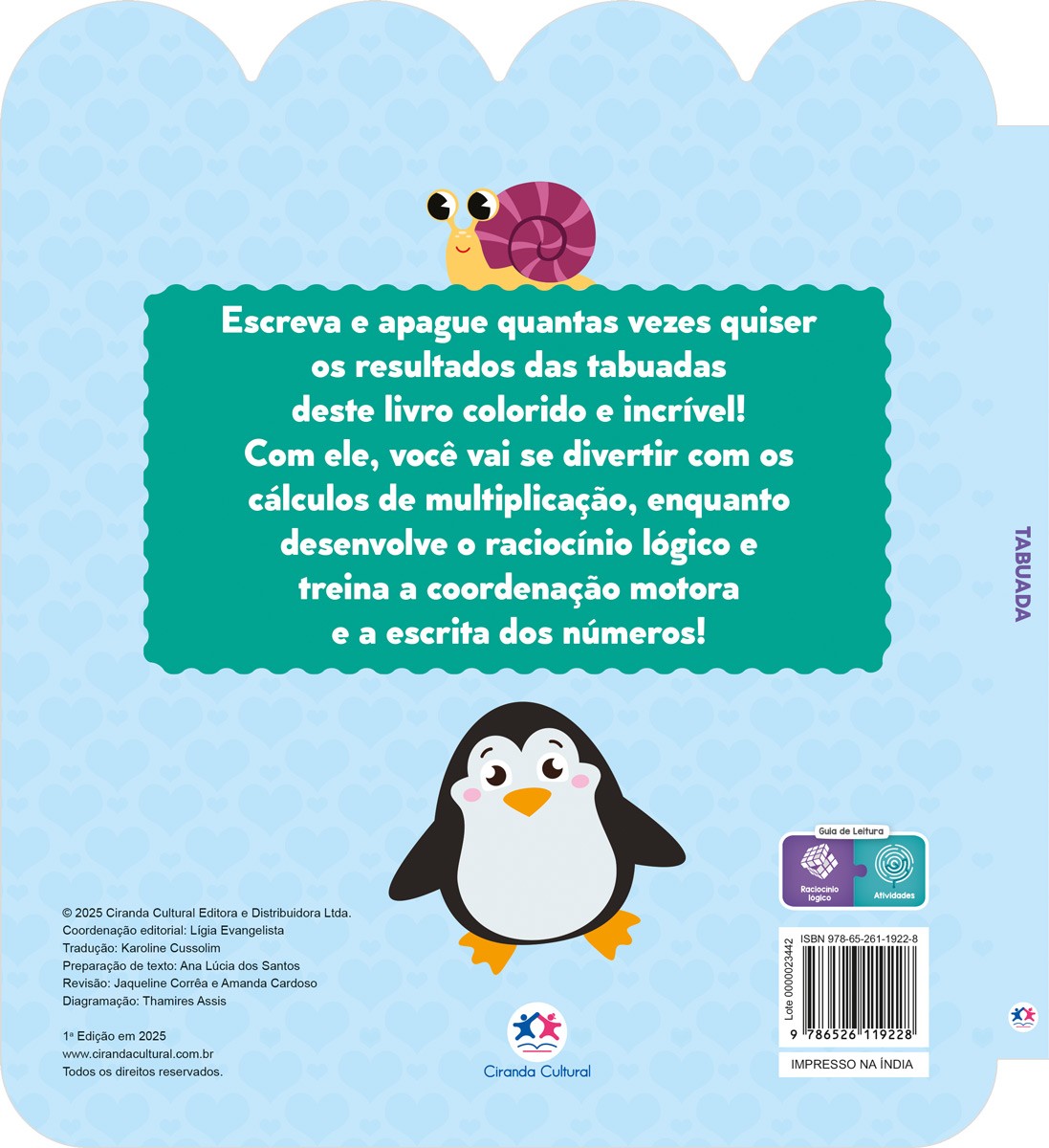 Escreva e apague quantas vezes quiser os resultados das tabuadas deste livro colorido e incrível! Com ele, você vai se divertir com os cálculos de multiplicação enquanto desenvolve o raciocínio lógico e treina a coordenação motora e a escrita dos números!