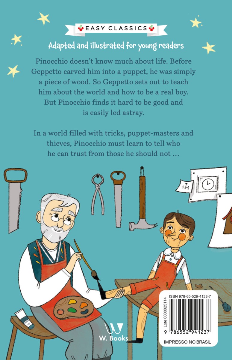 Pinocchio doesn’t know much about life. Before Geppetto carved him into a puppet, he was simply a piece of wood. So Geppetto sets out to teach him about the world and how to be a real boy. But Pinocchio finds it hard to be good and is easily led astray. In a world filled with tricks, puppet-masters and thieves, Pinocchio must learn to tell who he can trust from those he should not…Includes a free audiobook! QR Code Inside.