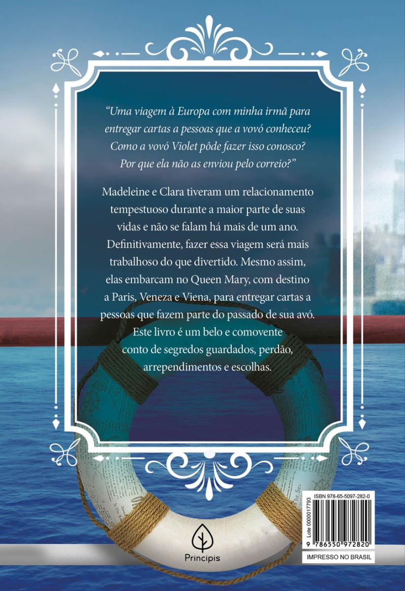 Centrada na família, no amor e no perdão, em Três palavras para adeus, Violet Bell, à beira da morte, pede às netas que entreguem três cartas para pessoas importantes de seu passado. É seu último adeus a elas. Mas durante o trajeto segredos de família serão revelados, e o relacionamento já frágil das irmãs será posto à prova. Madeleine e Clara tiveram um relacionamento tempestuoso durante a maior parte de suas vidas e não se falam há mais de um ano. Definitivamente, fazer essa viagem será mais trabalhoso do que divertido. Mesmo assim, elas embarcam no Queen Mary, com destino a Paris, Veneza e Viena, para entregar cartas a pessoas que fazem parte do passado de sua avó. Este livro é um belo e comovente conto de segredos guardados, perdão, arrependimentos e escolhas.