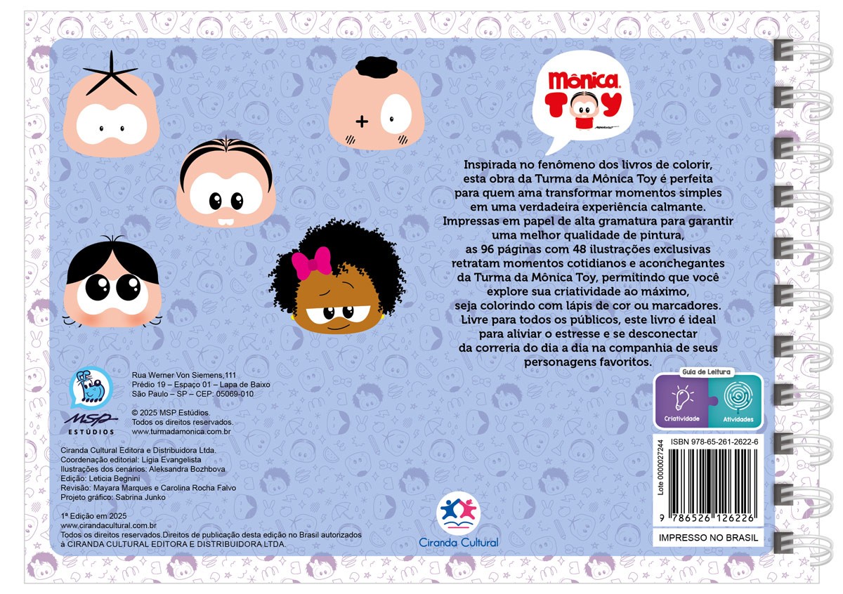 calmante. Impressas em papel de alta gramatura para garantir a melhor qualidade de pintura, as 96 páginas com 48 ilustrações exclusivas retratam momentos cotidianos e aconchegantes da Turma da Mônica, permitindo que você explore sua criatividade ao máximo, seja colorindo com lápis de cor ou marcadores.