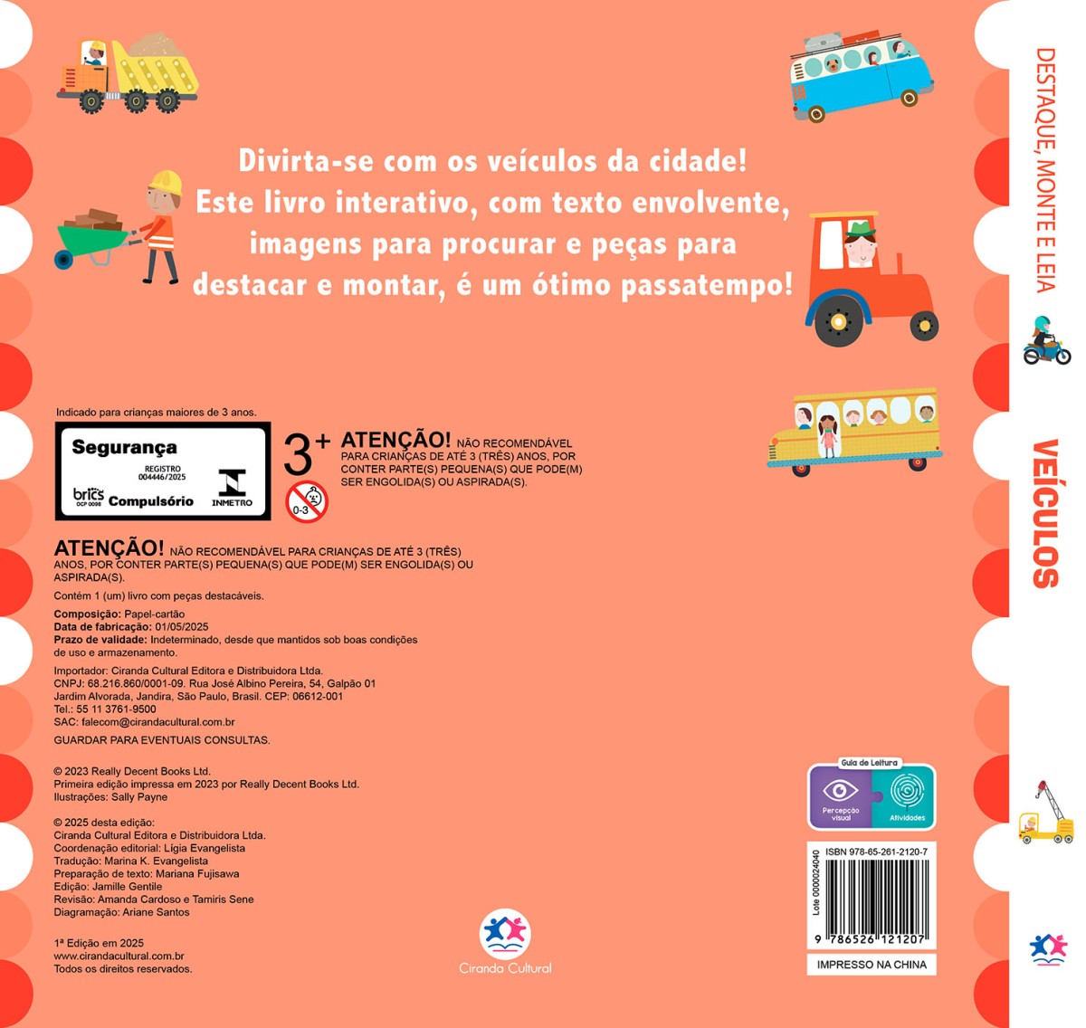 Além de se encantar com diferentes meios de transporte que circulam pelas ruas, a criança é convidada a observar detalhes, procurar figuras e montar cenários cheios de ação. Com atividades que estimulam a coordenação motora, a atenção e a imaginação, o livro transforma a leitura em uma experiência lúdica e participativa, perfeita para aprender brincando e criar histórias enquanto monta seus próprios veículos.