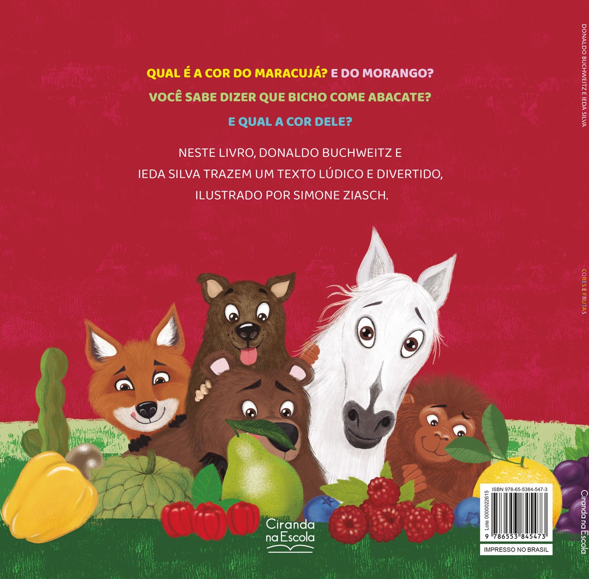 Qual é a cor do maracujá? E do morango? Você sabe dizer que bicho come abacate? E qual a cor dele?Neste livro, Donaldo Buchweitz e Ieda Silva trazem um texto lúdico e divertido, ilustrado por Simone Ziasch.