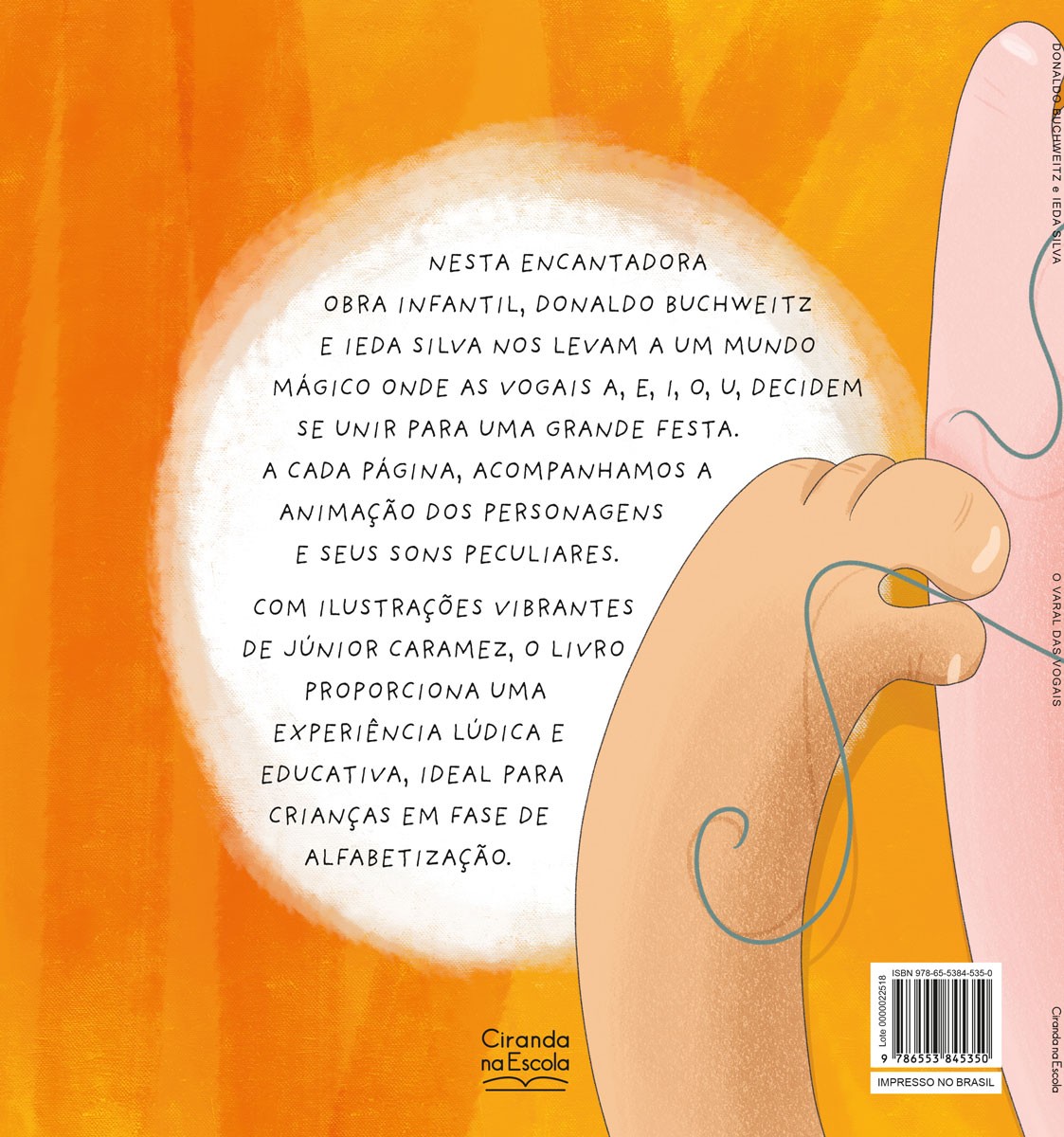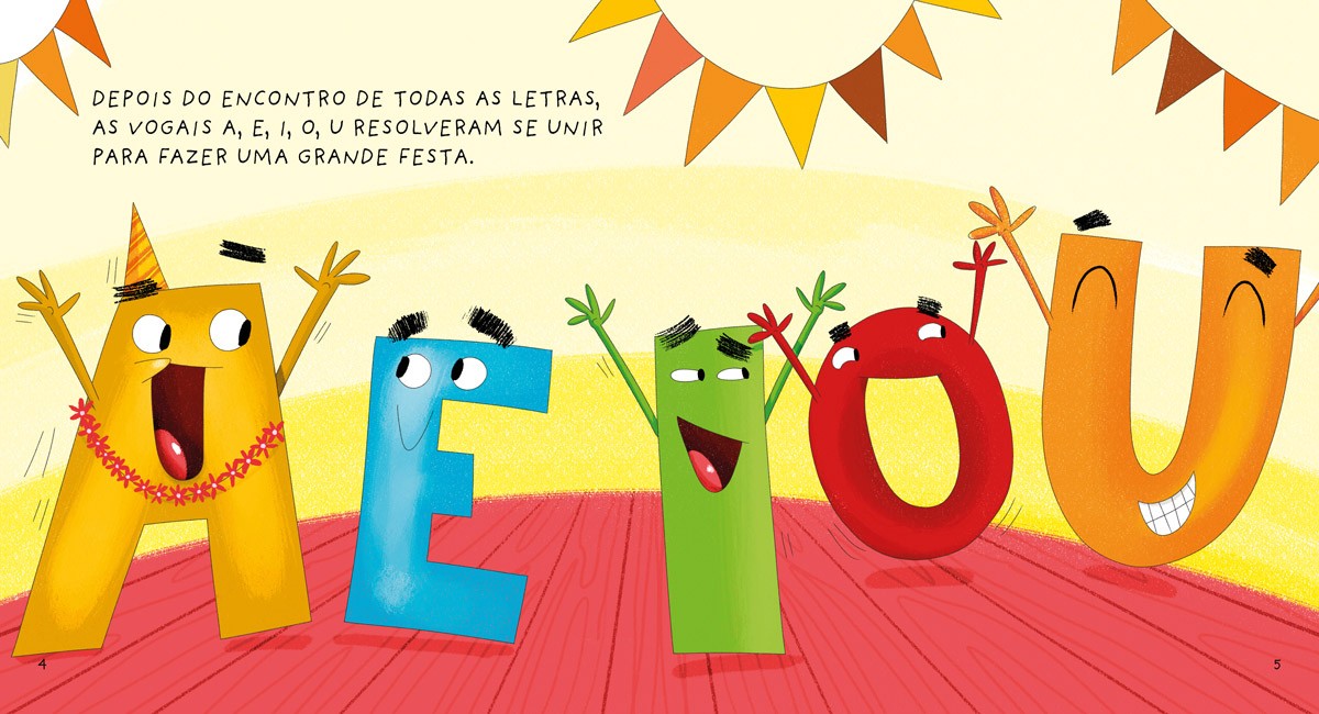 Nesta encantadora obra infantil, Donaldo Buchweitz e Ieda Silva nos levam a um mundo mágico onde as vogais a, e, i, o, u, decidem se unir para uma grande festa. A cada página, acompanhamos a animação dos personagens e seus sons peculiares. Com ilustrações vibrantes de Júnior Caramez, o livro proporciona uma experiência lúdica e educativa, ideal para crianças em fase de alfabetização.