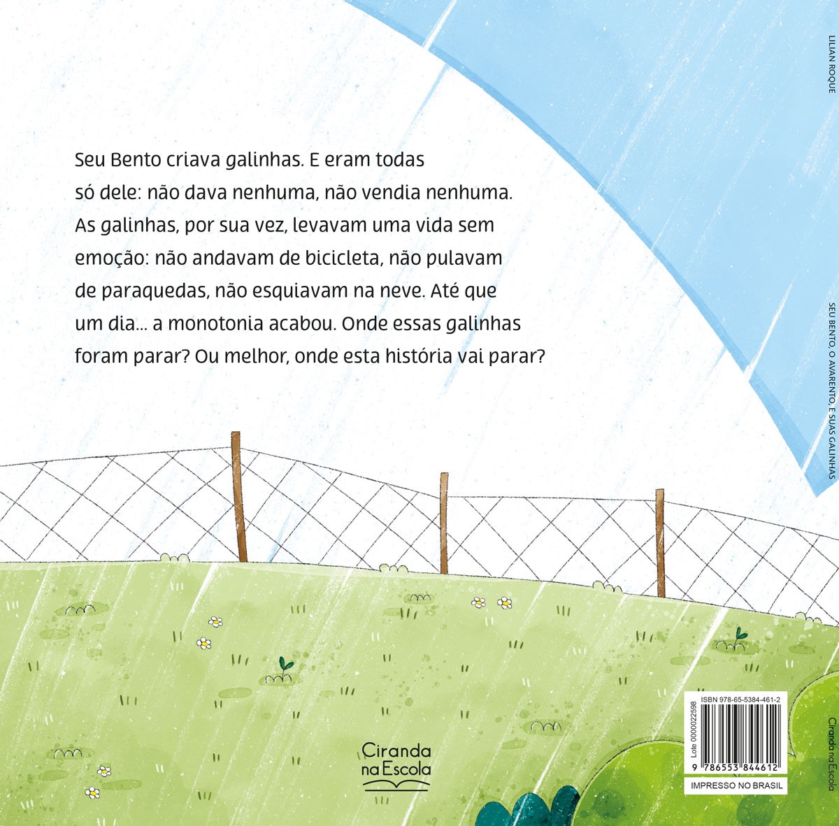 Seu Bento criava galinhas. E eram todas só dele: não dava nenhuma, não vendia nenhuma. As galinhas, por sua vez, levavam uma vida sem emoção: não andavam de bicicleta, não pulavam de paraquedas, não esquiavam na neve. Até que um dia... a monotonia acabou. Onde essas galinhas foram parar? Ou melhor, onde esta história vai parar?