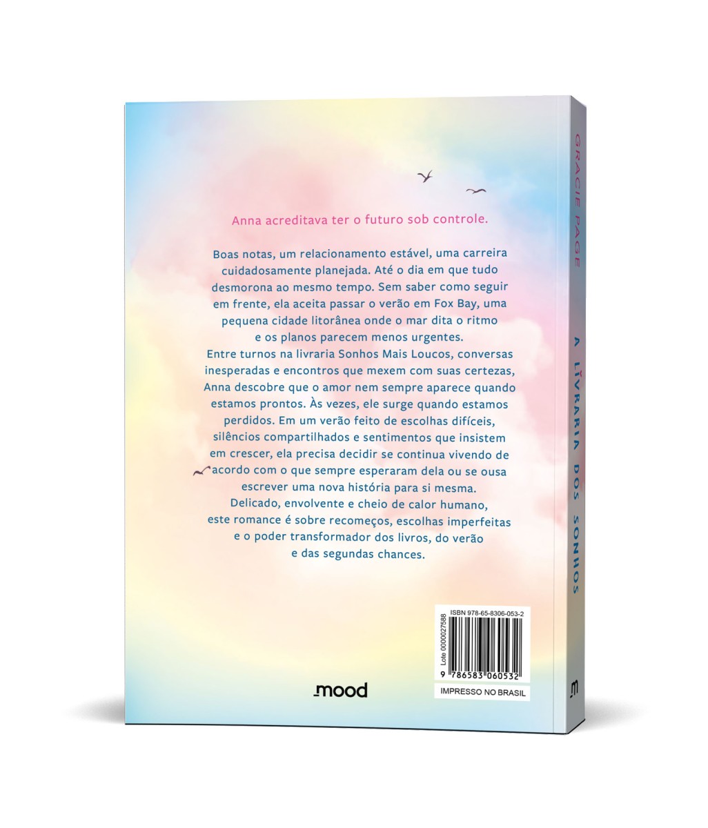Boas notas, um relacionamento estável, uma carreira cuidadosamente planejada. Até o dia em que tudo desmorona ao mesmo tempo. Sem saber como seguir em frente, ela aceita passar o verão em Fox Bay, uma pequena cidade litorânea onde o mar dita o ritmo e os planos parecem menos urgentes.Entre turnos na livraria Sonhos Mais Loucos, conversas inesperadas e encontros que mexem com suas certezas, Anna descobre que o amor nem sempre aparece quando estamos prontos. Às vezes, ele surge quando estamos perdidos. Em um verão feito de escolhas difíceis, silêncios compartilhados e sentimentos que insistem em crescer, ela precisa decidir se continua vivendo seguindo seus planos ou se vai escrever uma nova história para si mesma. Delicado, envolvente e cheio de calor humano, este romance é sobre recomeços, escolhas imperfeitas e o poder transformador dos livros, do verão e das segundas chances.