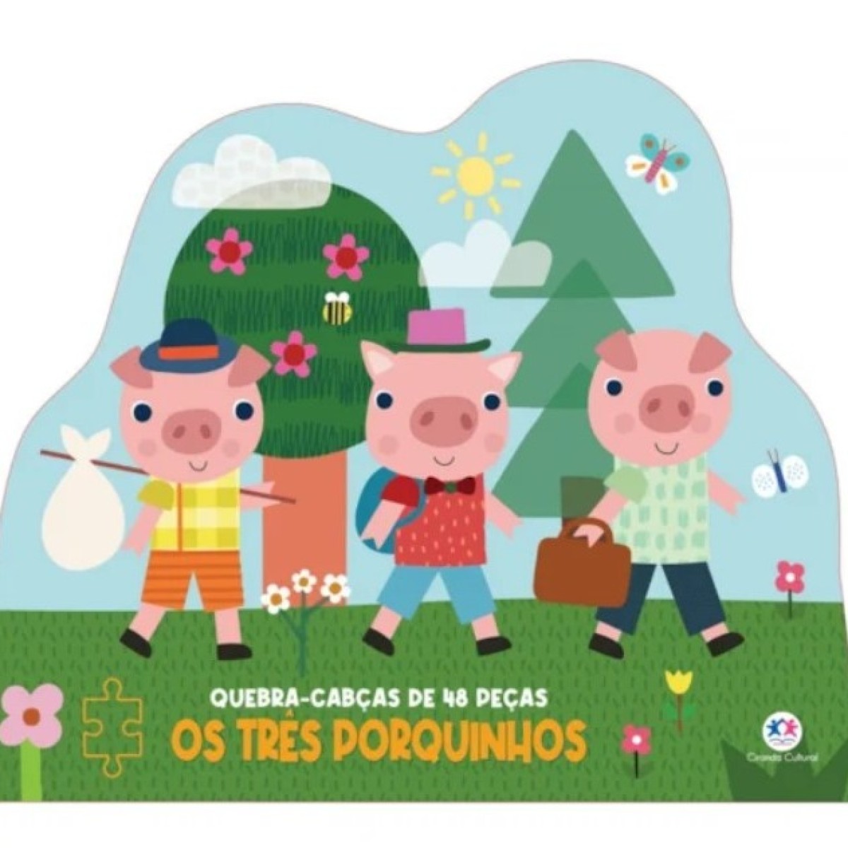 Venha conhecer os três porquinhos irmãos em uma superaventura! Depois, monte o quebra-cabeça grandão para brincar.