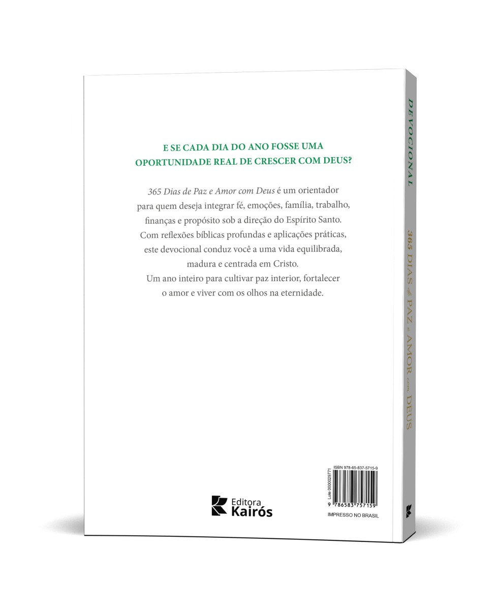365 Dias de Paz e Amor com Deus é um orientador para quem deseja integrar fé, emoções, família, trabalho, finanças e propósito sob a direção do Espírito Santo.