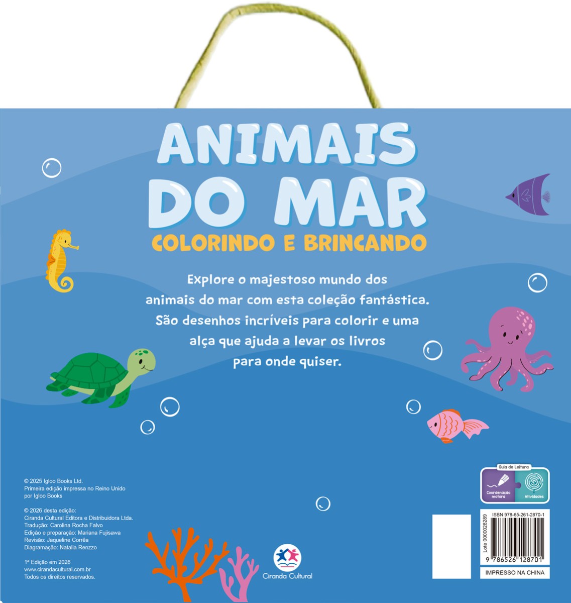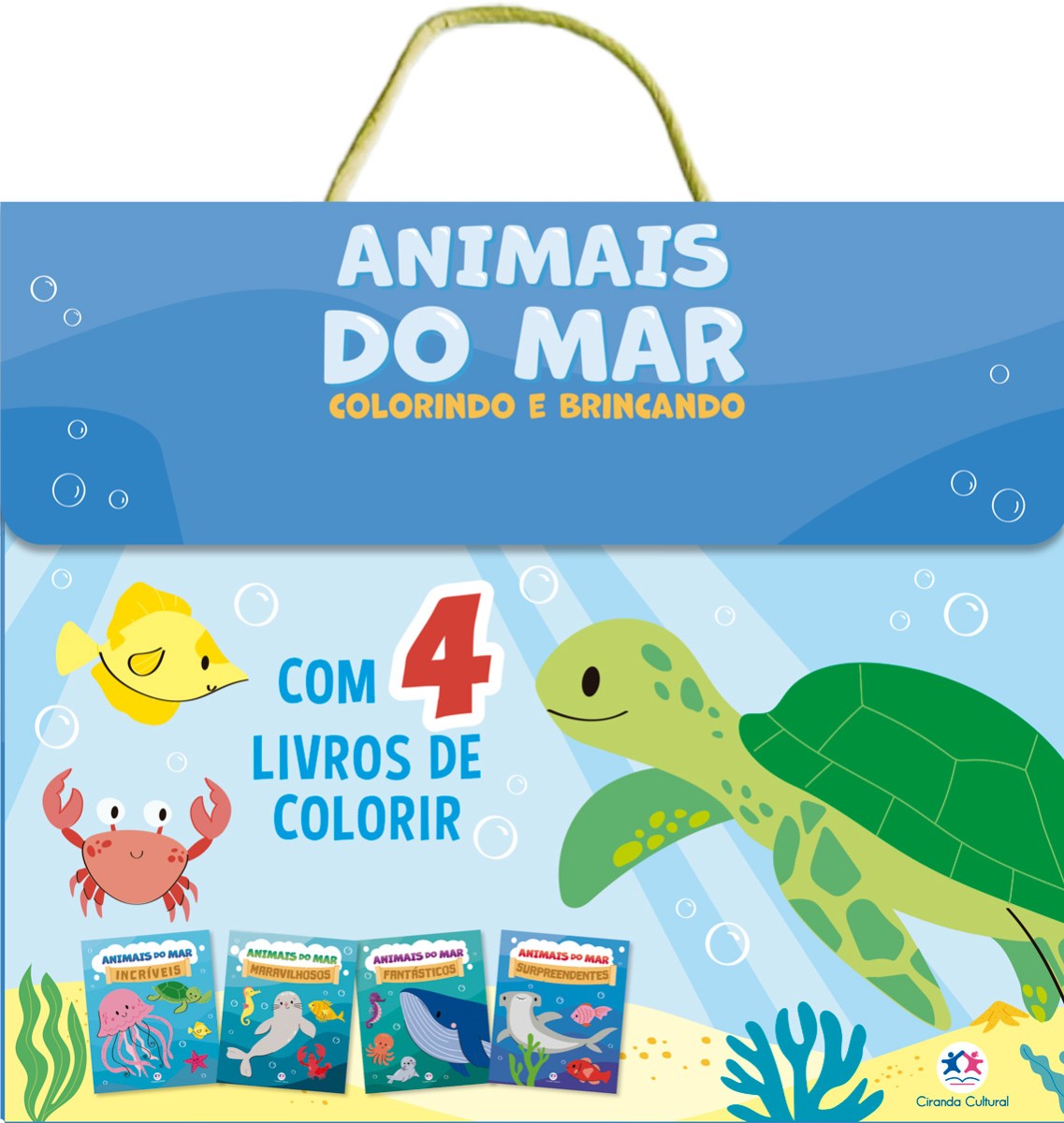 Explore o majestoso mundo dos animais do mar com esta coleção fantástica. São desenhos incríveis para colorir e uma alça que ajuda a levar os livros para onde quiser.