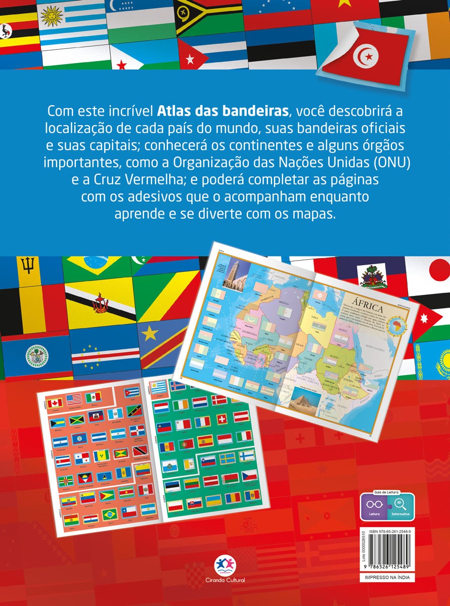 Com este incrível Atlas das bandeiras, você descobrirá a localização de cada país do mundo, suas bandeiras oficiais e suas capitais; conhecerá os continentes e alguns órgãos importantes, como a Organização das Nações Unidas (ONU) e a Cruz Vermelha; e poderá completar as páginas com os adesivos que o acompanham enquanto aprende e se diverte com os mapas.