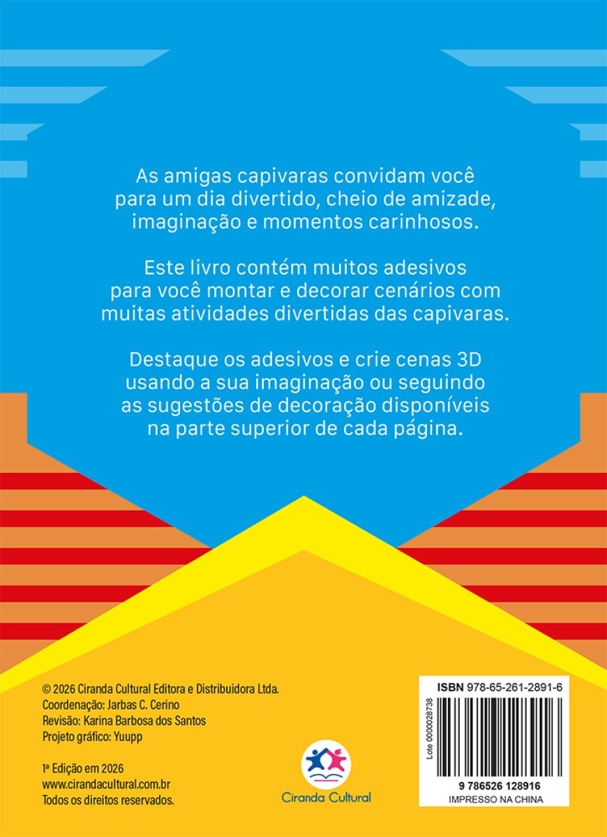 Entre no universo divertido das capivaras com o Kit de Adesivos 3D! Monte cenas cheias de fofura e alegria usando adesivos em relevo supercoloridos. Um livro encantador para brincar, criar e se apaixonar pelo animal mais tranquilo e simpático do Brasil!