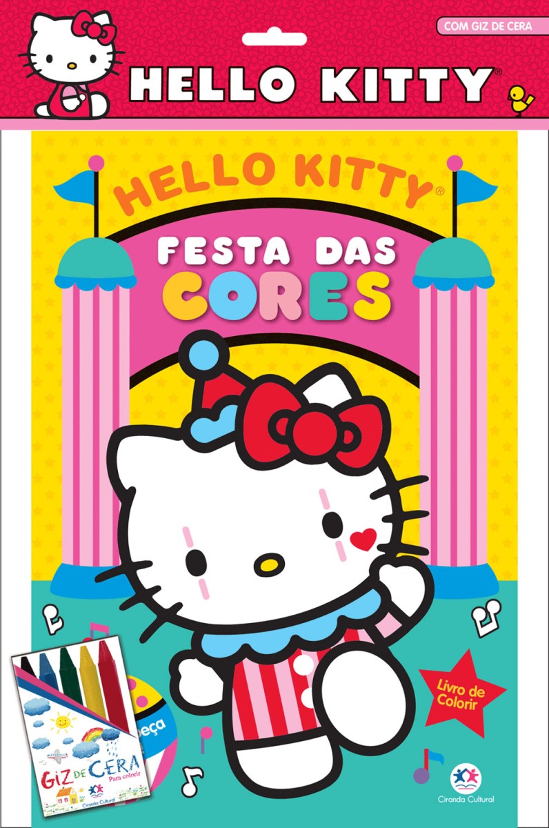 Kit composto por: 9788538059851 Hello Kitty - Festa das cores e giz de cera
