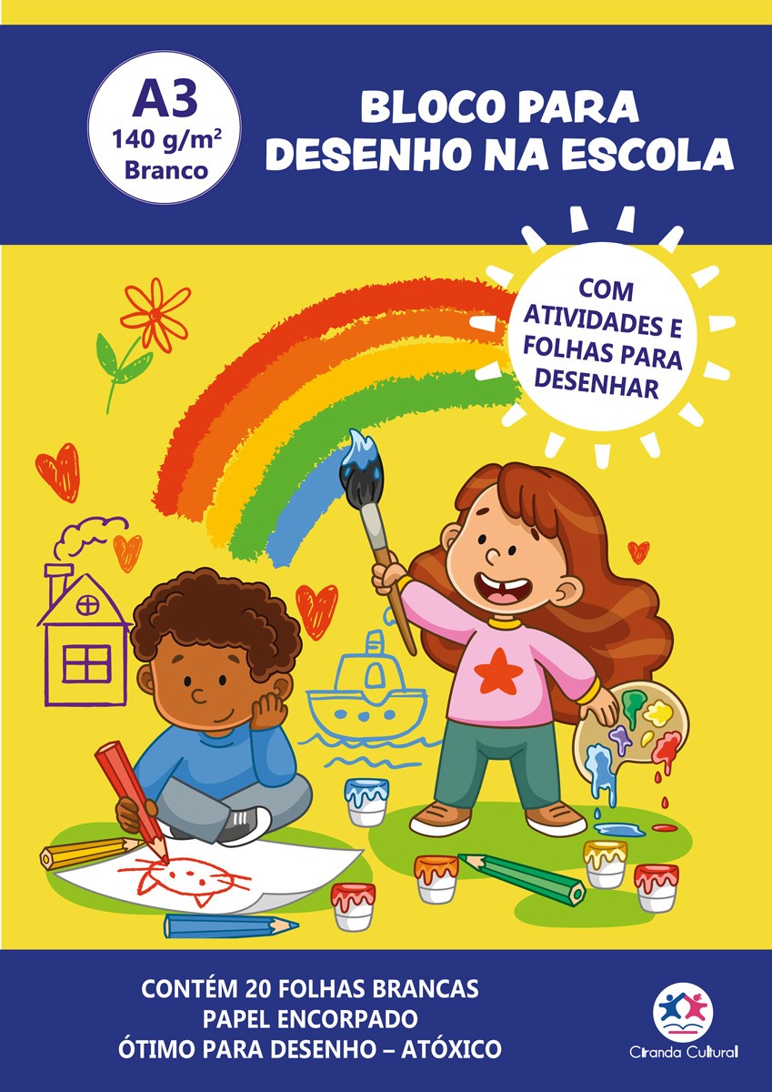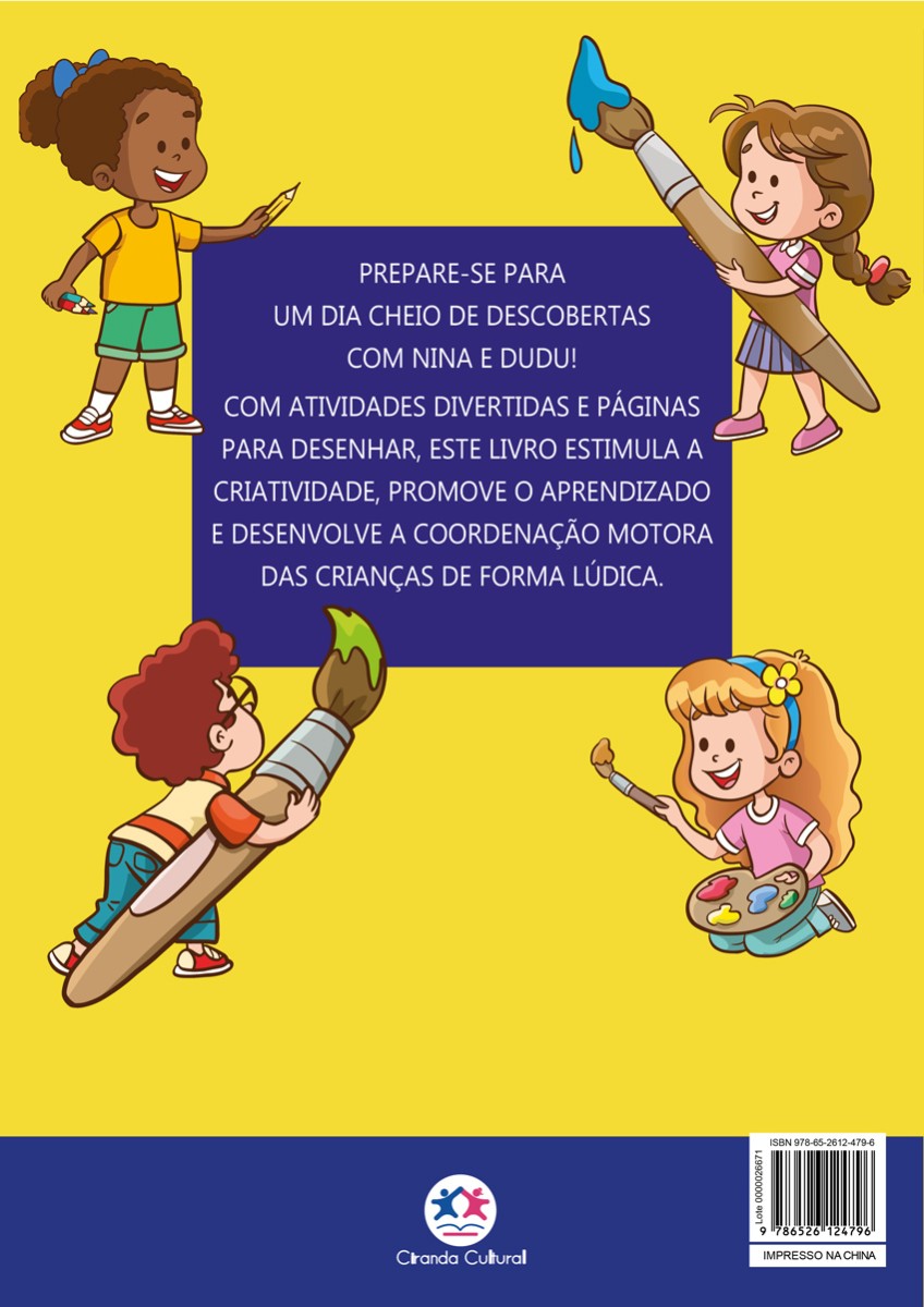 Prepare-se para um dia cheio de descobertas com Nina e Dudu! Este livro estimula a criatividade, promove o aprendizado e desenvolve a coordenação motora das crianças de forma lúdica, com atividades divertidas e páginas para desenhar. Bloco para desenho A3 140g, contém 20 folhas brancas, papel encorpado, ótimo para desenhar - Atóxico, com 8 páginas de atividades e 20 folhas em branco para desenhar, com tintas, lápis, canetinhas, até onde sua imaginação alcançar. Boa diversão!