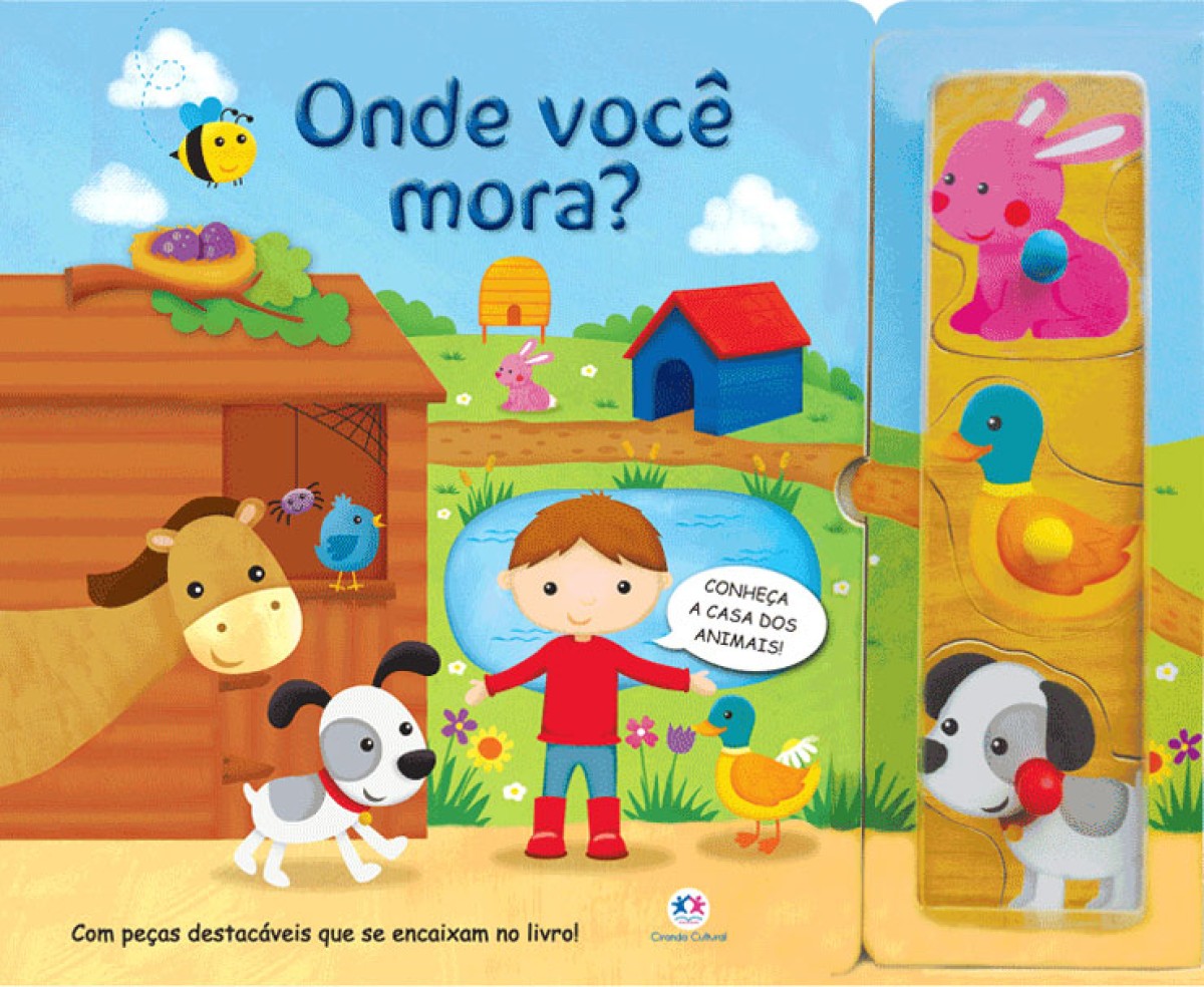 O sapo mora na lagoa. Quem mais mora lá? Este livro vem com três peças destacáveis no formato de lindos animais e é perfeito para a hora da brincadeira. Encaixe os bichinhos nas páginas, veja onde cada um mora e divirta-se enquanto aprende.