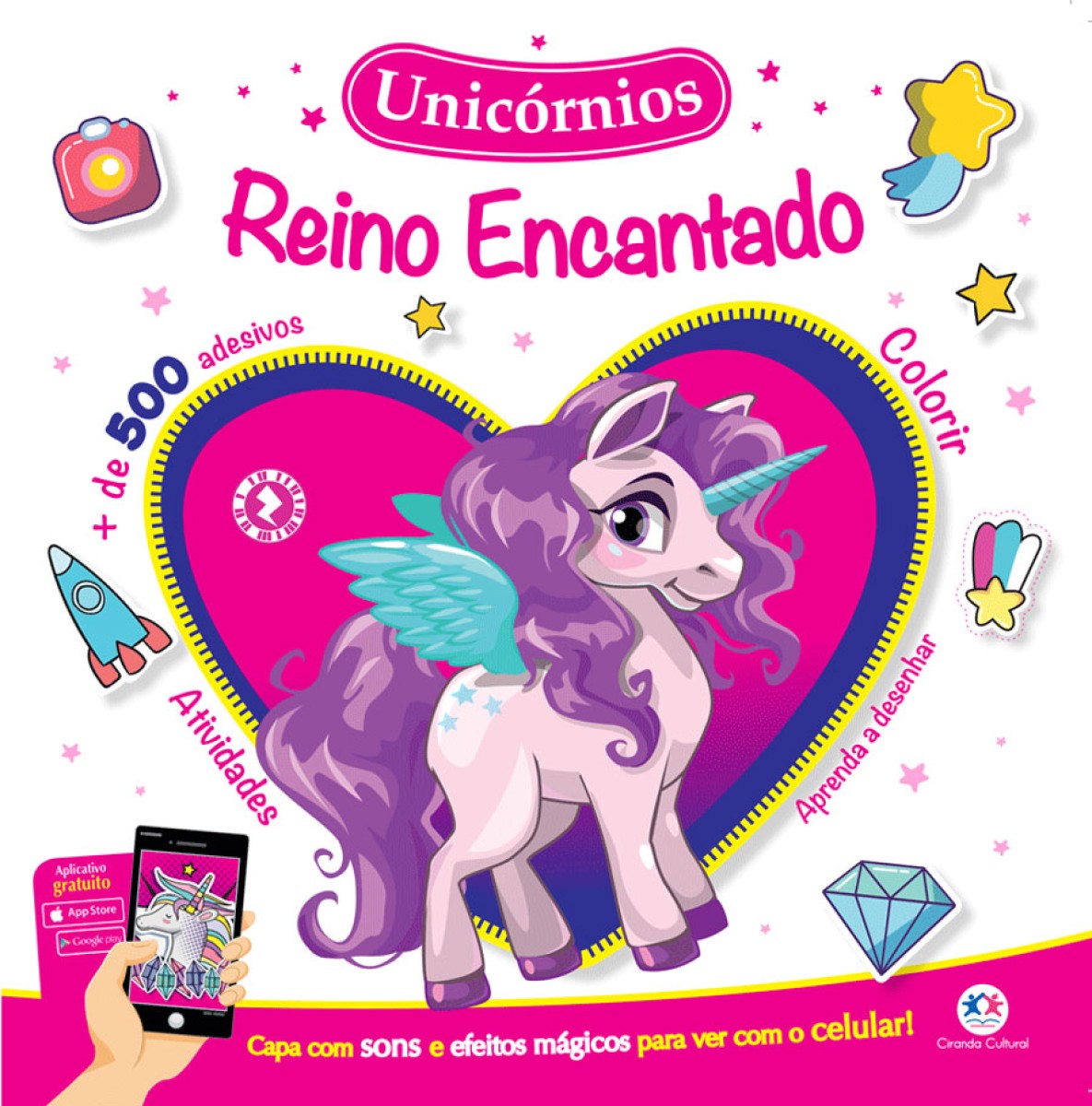 Divirta-se com os unicórnios encantados, aprenda a desenhar, dê cores a lindas ilustrações e aprenda brincando com as atividades incríveis deste livro, que acompanha mais de 500 adesivos para você colar nas atividades, nas páginas e onde mais quiser. Além disso, você pode baixar o aplicativo no seu celular para ouvir sons e ver efeitos especiais na capa com o código*. Capture e veja a mágica acontecer. Você nunca viu nada igual!