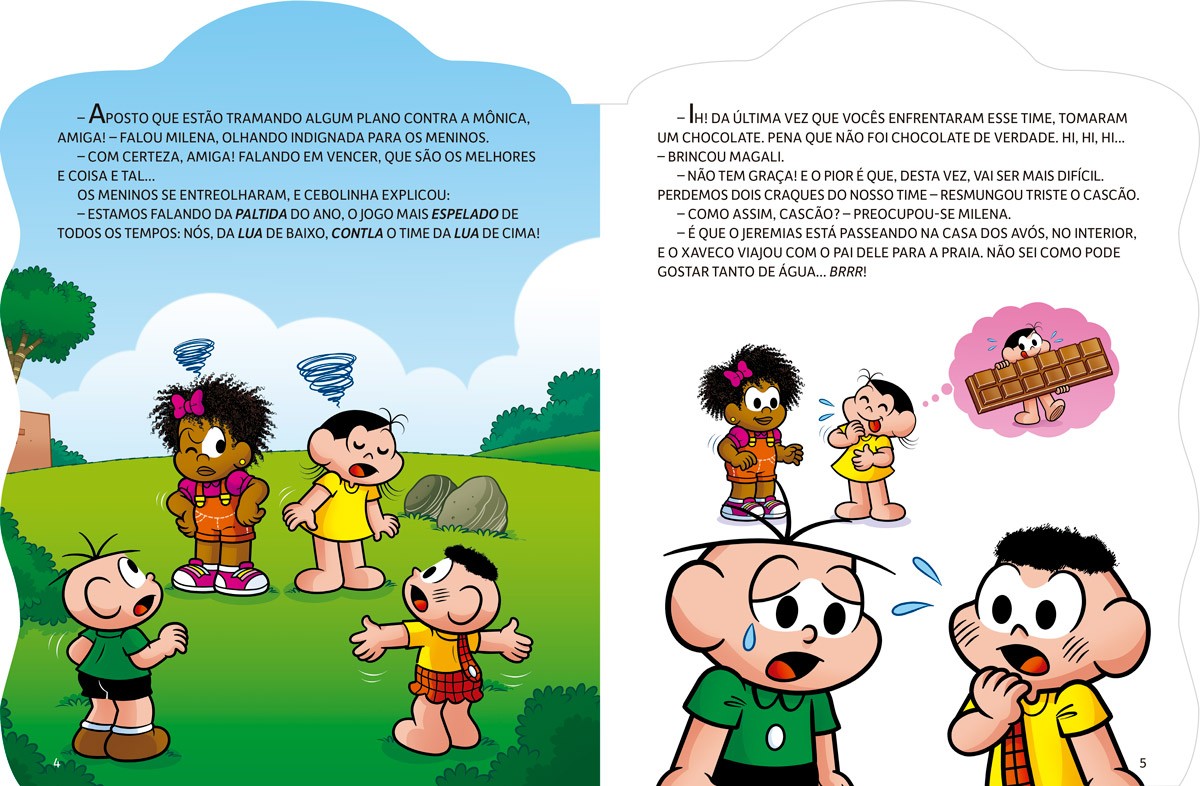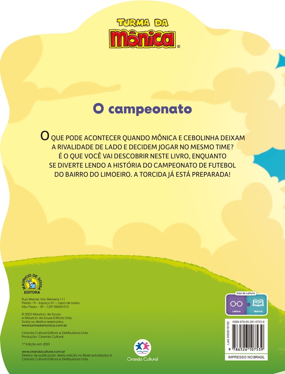 O que será que pode acontecer quando Mônica e Cebolinha deixam a rivalidade de lado e decidem jogar no mesmo time? Descubra neste livro, enquanto se diverte lendo a história do campeonato de futebol do bairro do Limoeiro. Prepare a sua torcida!