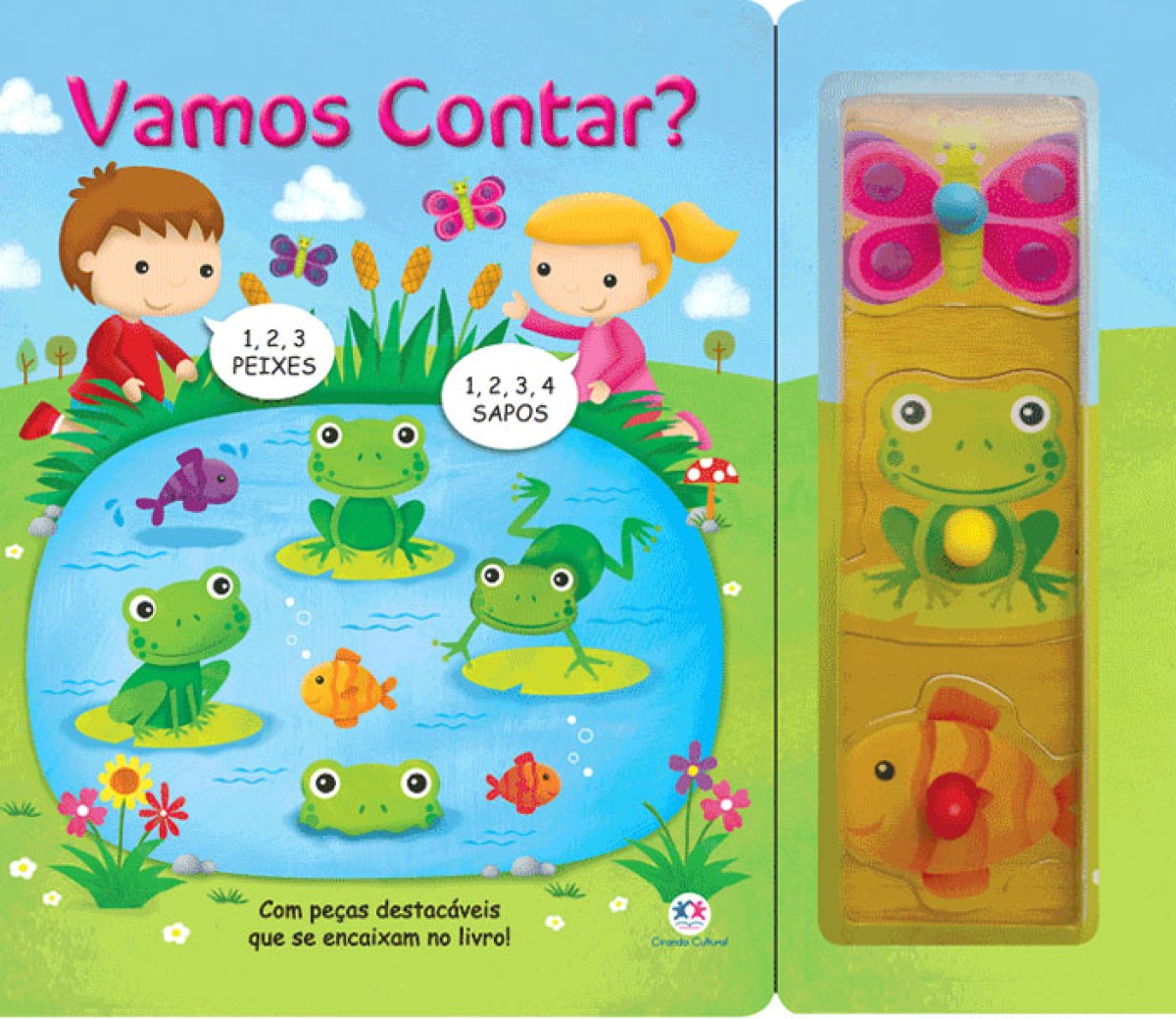 Vamos contar quantos sapos há na lagoa? Agora coloque mais um! Este livro vem com três peças destacáveis no formato de lindos animais e é perfeito para a hora da brincadeira. Encaixe os bichinhos nas páginas, conte quantos são e divirta-se enquanto aprende os números.