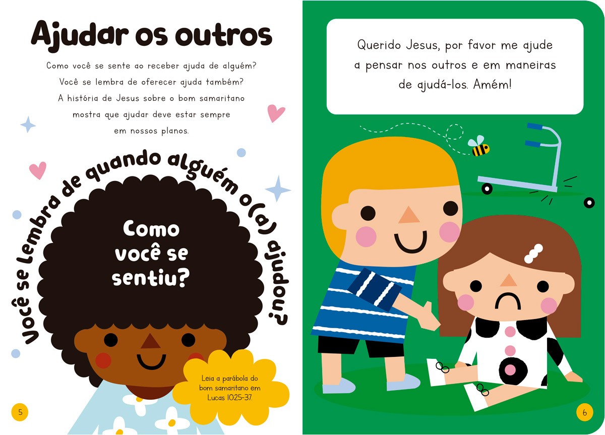 Converse com os pequeninos sobre Deus com este livro de orações que traz vinte temas importantes, como orar, compartilhar, ajudar e perdoar, além de abordar sentimentos como preocupação, medo, animação e outros. Um livro com perguntas simples, orações doces e sugestões de trechos da Bíblia, ideal para ser lido em família.