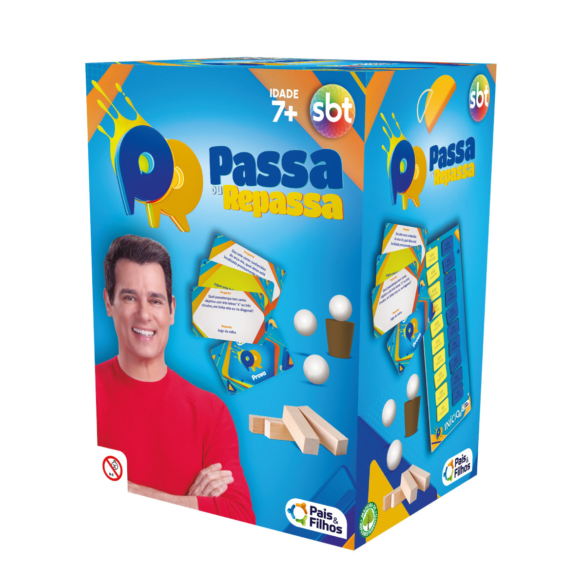 Passa Ou Repassa – Jogo de perguntas e respostas inspirado no famoso programa de TV. Garante diversão em grupo e estimula o conhecimento geral. Para lojistas, é um produto moderno e de apelo nostálgico que atrai diferentes públicos.