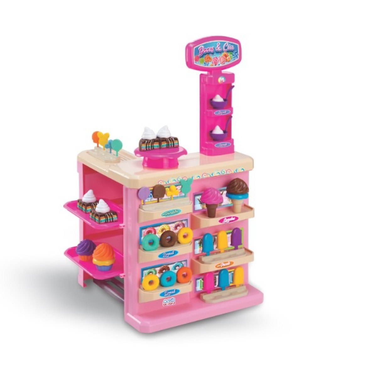 - Design Criativo: Com cores vibrantes e detalhes realistas, a Confeitaria Doces E Companhia chama a atenção e estimula a criatividade dos pequenos.