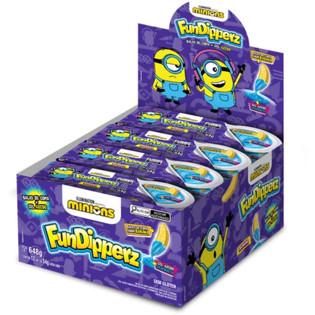 Doce Fundipperz Minions 648g BALA DE GOMA DOCE SABOR BANANA COM GELEIA DE FAMBORESA CITRICA SABOR FRAMBOES. UMA INOVADORA EXPERIENCIA DE CONSUMO