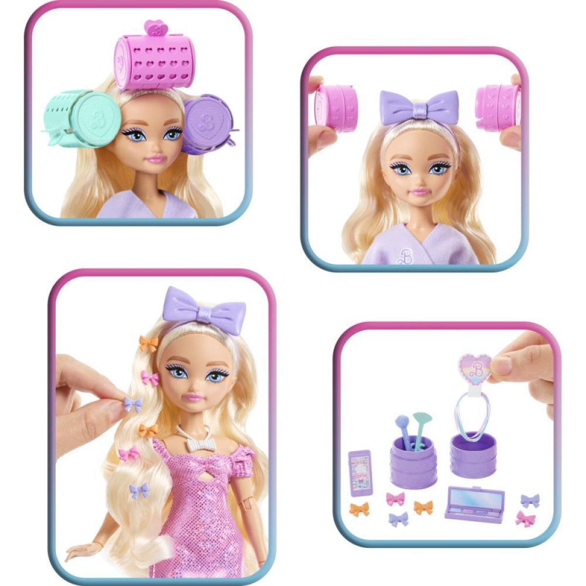 A Barbie tem cabelos longos para um estilo divertido. Arrume o cabelo dela com elásticos e presilhas, e até adicione giz de cabelo.