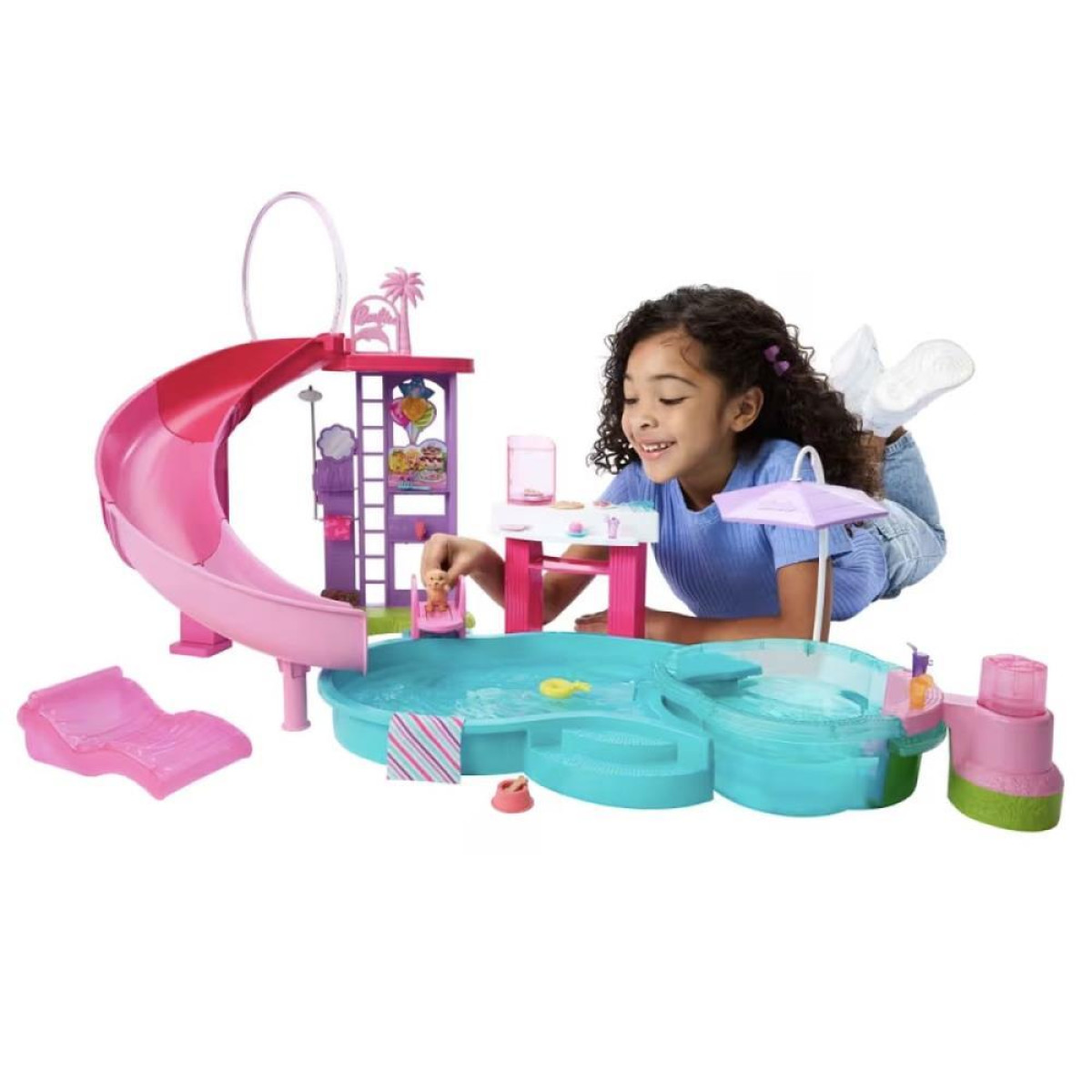 Você pode aproveitar a Piscina dos Sonhos da Barbie, onde todo dia é dia de piscina! As crianças podem mergulhar de cabeça nas brincadeiras com este conjunto que apresenta seis áreas de recreação, como piscina, escorregador, banheira de hidromassagem e estação de lanches, além de mais de 20 acessórios. Você pode encher a piscina com água para uma festa instantânea na piscina e, em seguida, mandar as bonecas Barbie (vendidas separadamente) descerem pelo escorregador para fazer um respingo! Você pode pressionar a alavanca para ver as bolhas se formarem na banheira de hidromassagem e, em seguida, dirigir-se à estação de lanches para servir ainda mais diversão. Quer as crianças adicionem esse conjunto à sua Casa dos Sonhos ou brinquem com ele sozinho, o Conjunto Piscina dos Sonhos da Barbie é um presente que fará um grande barulho na hora de brincar para crianças a partir de 3 anos de idade. Bonecas não incluídas. As cores e as decorações podem variar. Toda interação com água deve ser feita sob a supervisão de pais e responsáveis.