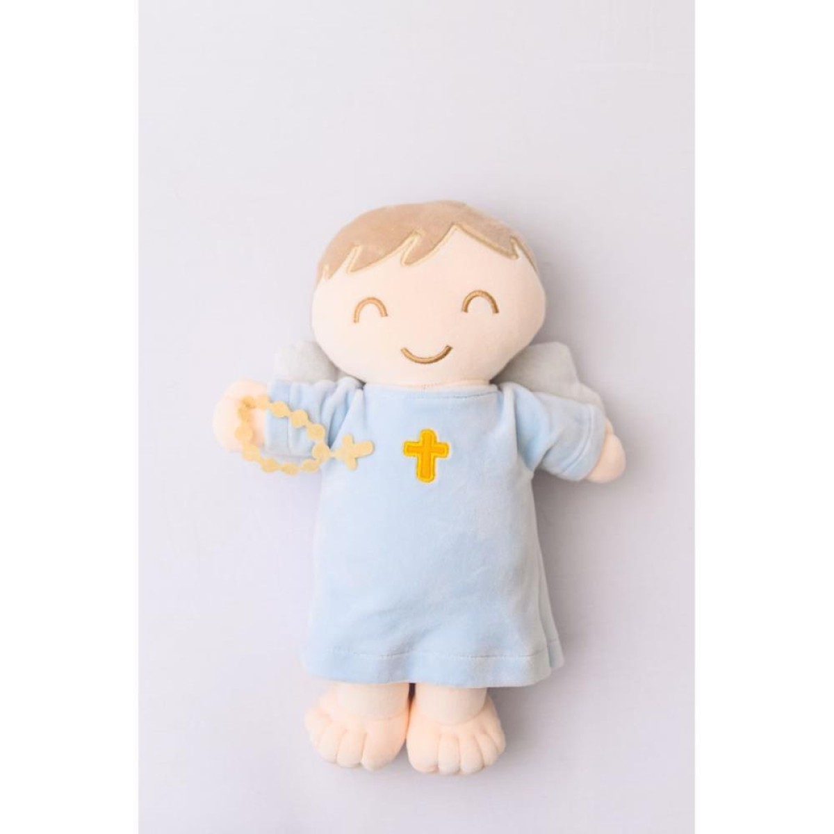 Anjo da Guarda em plush com acabamento delicado e detalhes bordados.